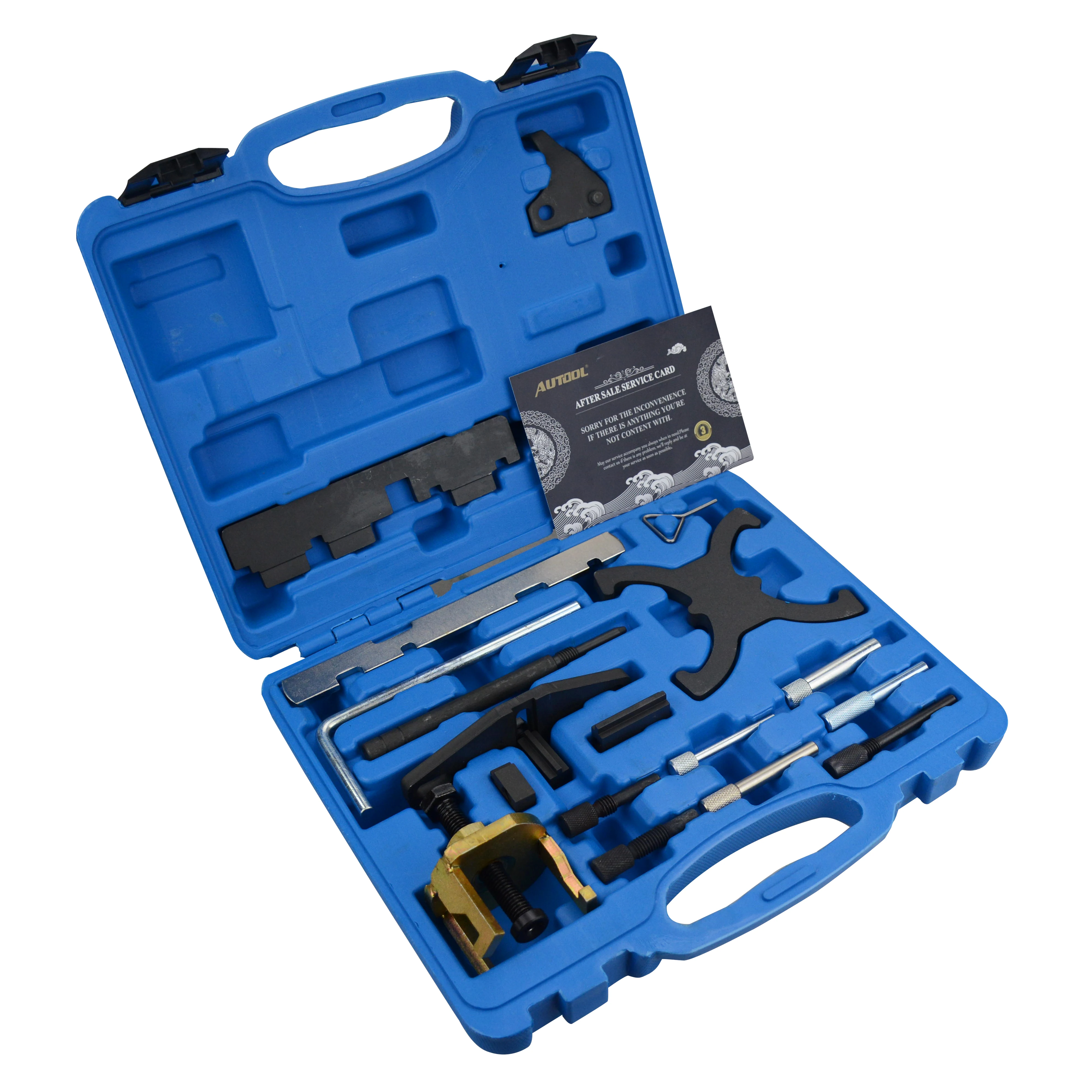[Комбинированный комплект]: для блокировки и/или положения распределительного вала, коленчатых валов и натяжителей ремня времени, а также для регулировки блока VTC. Распределительный вал и маховик фиксирующие инструменты различные зубчатые штифты плюс инструмент для удаления звездочки распределительного вала.