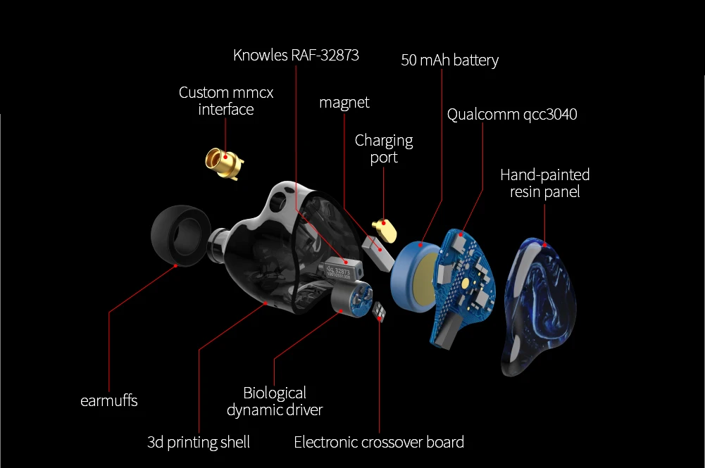 Q2s использует оборудование для 3d-печати DLP четвертого поколения и импортные безопасные для кожи полимерные материалы, чтобы сделать корпус наушников тоньше и удобнее носить.