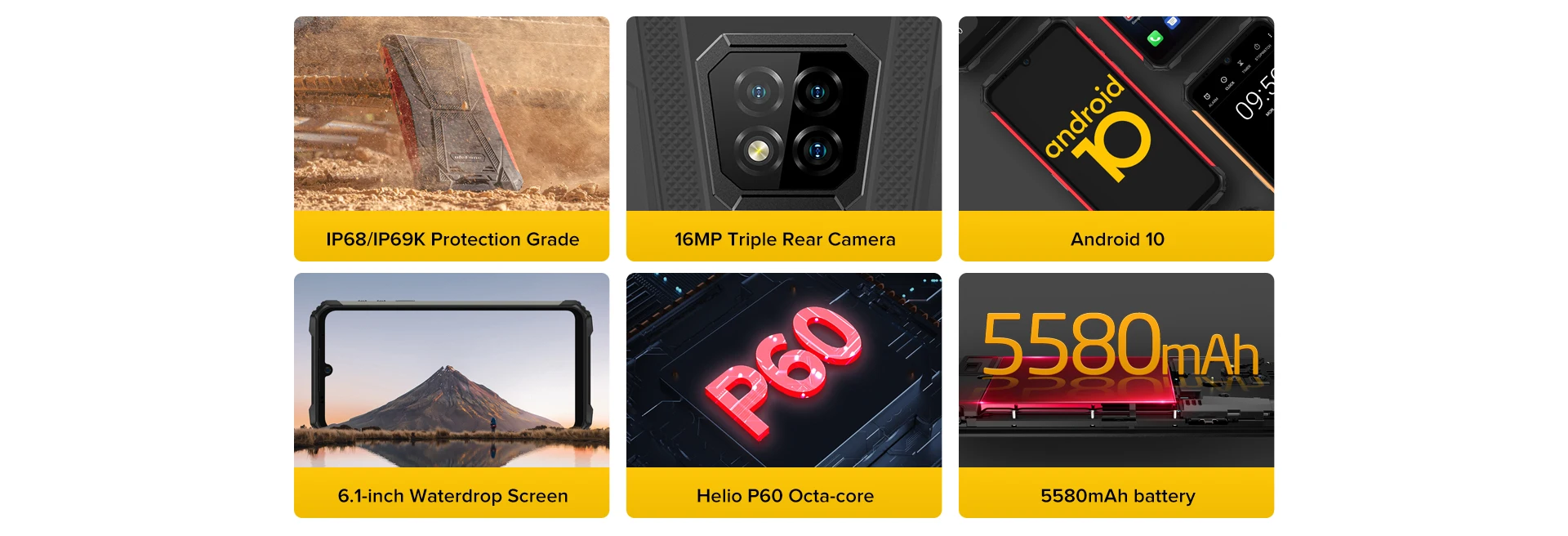 Ulefone power 8 прочный мобильный телефон 4 Гб + 64 ГБ Android 10 Мобильный телефон 6,1 дюймов 5580 мА/ч, 16MP тройной Камера Водонепроницаемый смартфон