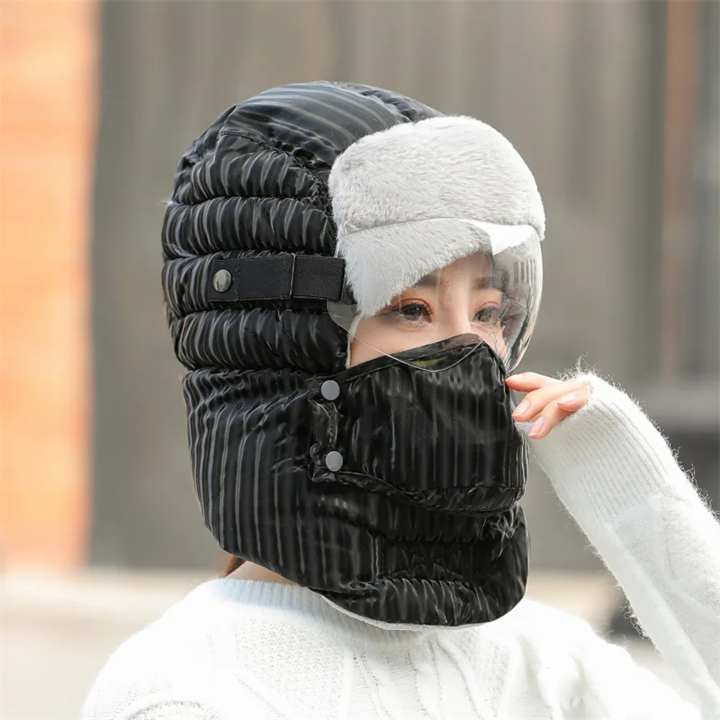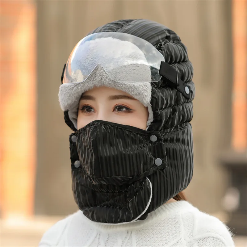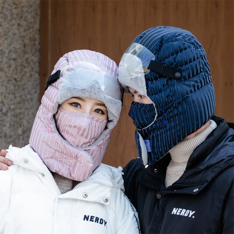Новые стильные шапки для мужчин и женщин, зимние теплые толстые очки Lei Feng, велосипедные ветрозащитные зимние уличные трехмерные ушные шапки