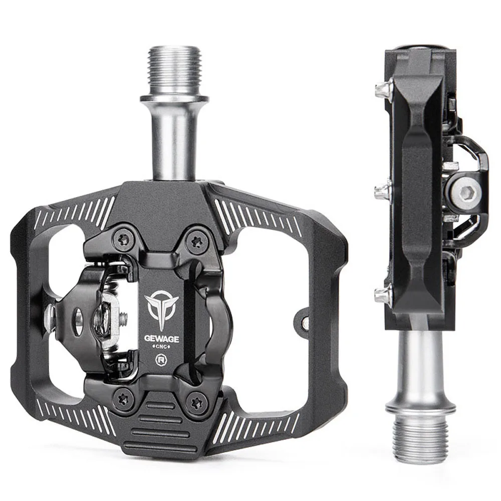Dual Function: Double-sided bicycle pedals, one side is a traditional flat pedal, suitable for ordinary shoes, and the other side is SPD step-in pedal, suitable for SPD cycling shoes.