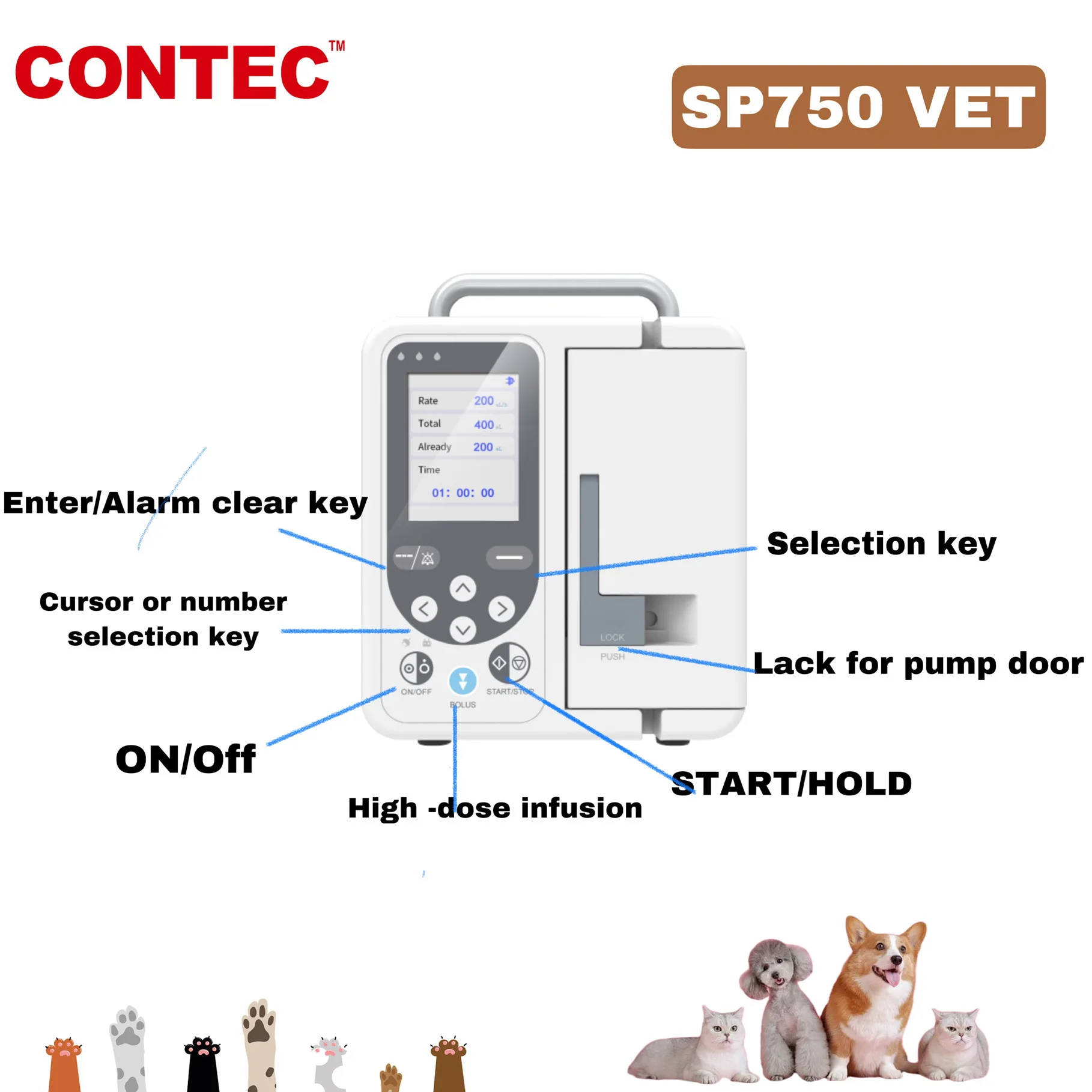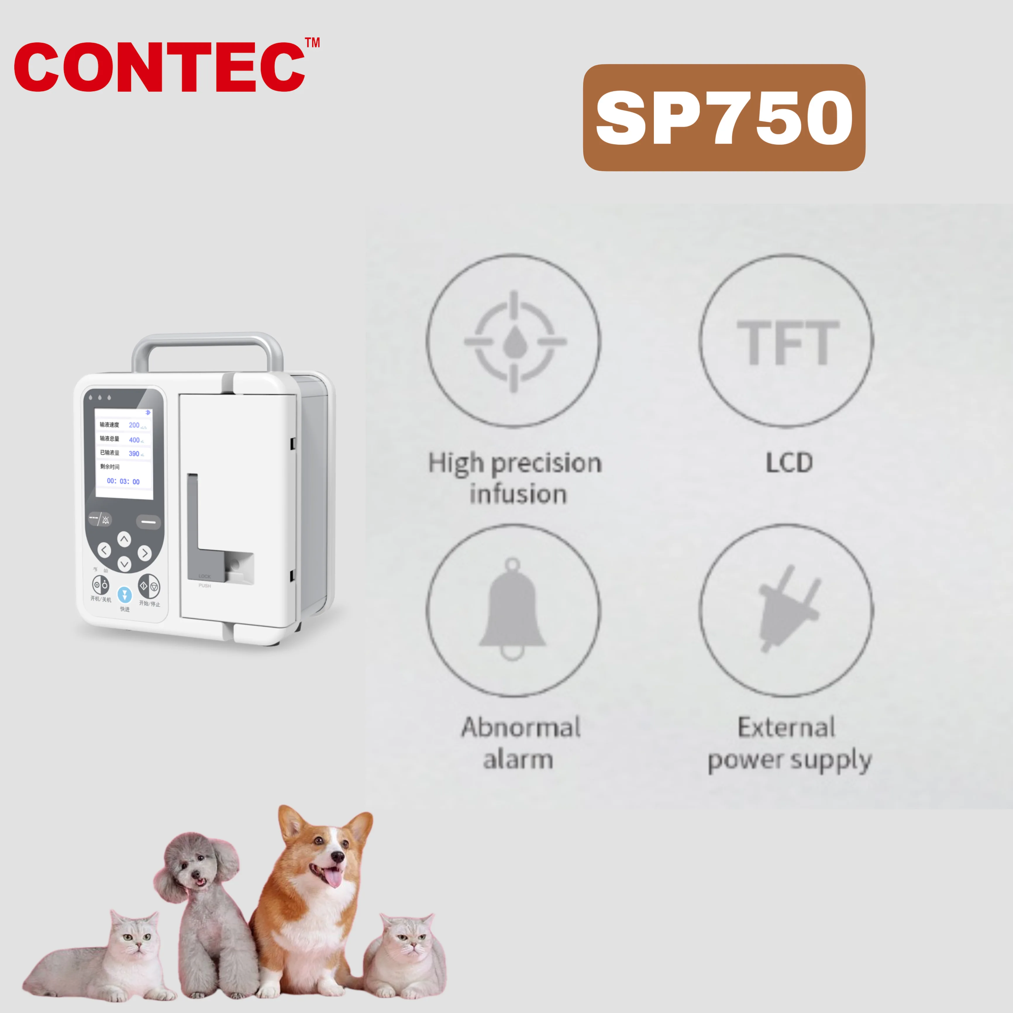 CONTEC ветеринарный инфузионный насос SP750 VET LCD Высокоточный инфузионный внешний источник питания