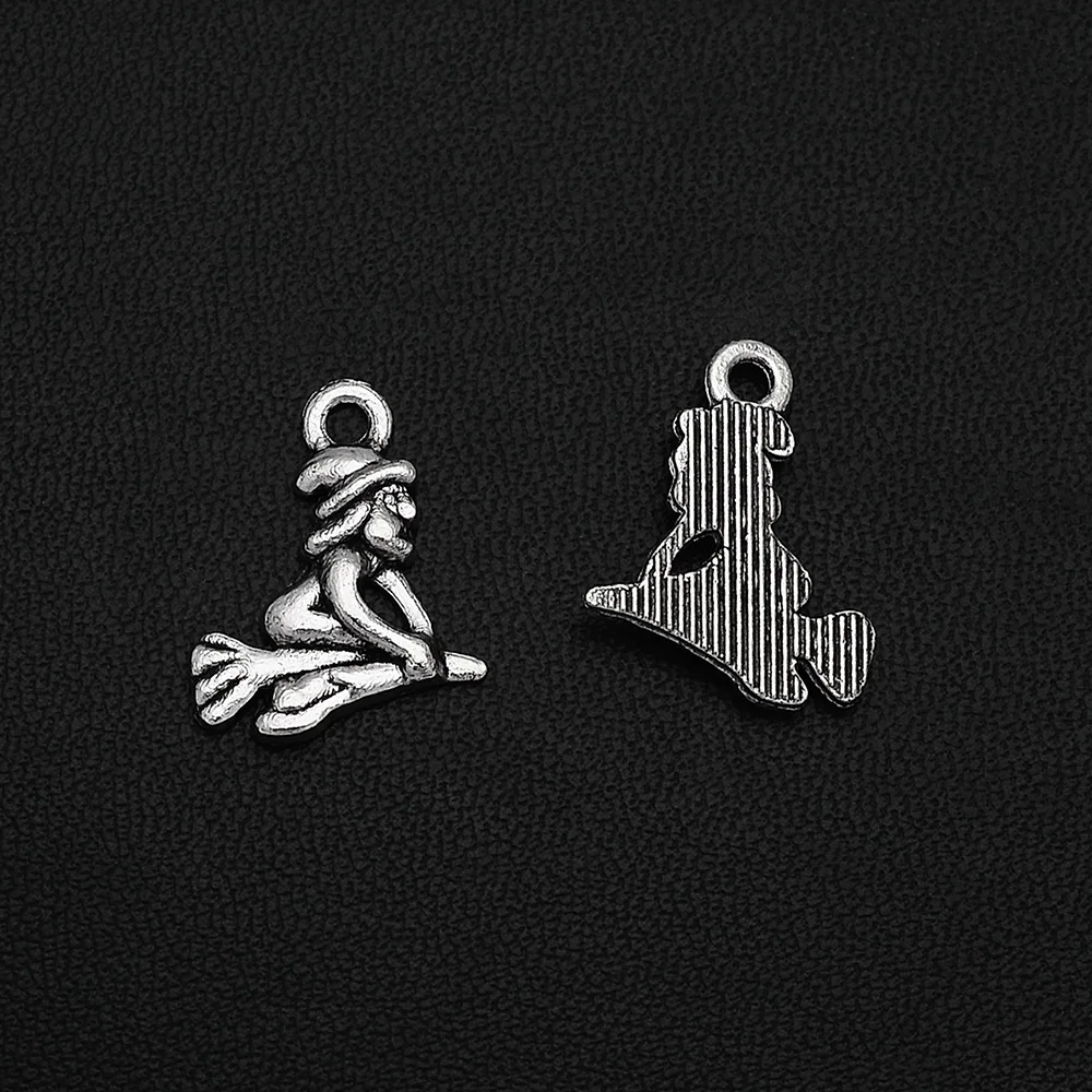 Название: 40 шт./лот 15x18 мм Античные посеребренные Ведьма езда подвески с метлой Хэллоуин волшебник подвески для Diy ювелирных изделий в поисках