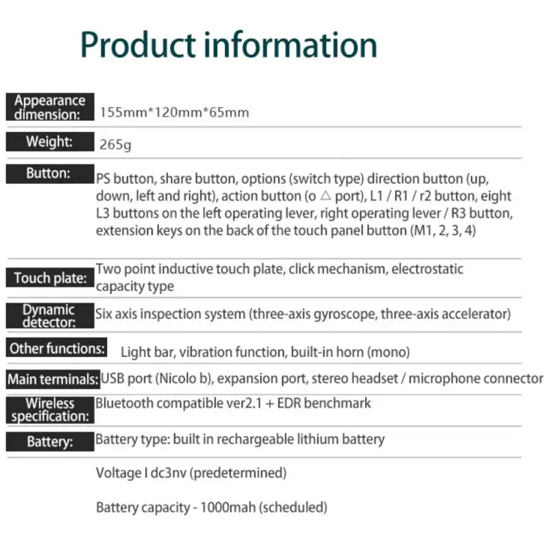 Longer handles improve the sense of control and provide a comfortable operating experience. The controller is equipped with two analog joysticks on the left and right. You can easily play action games or PS shooting games that require delicate operations. In addition, you can also experience new operating pleasures such as flicking or sliding through the touchpad.