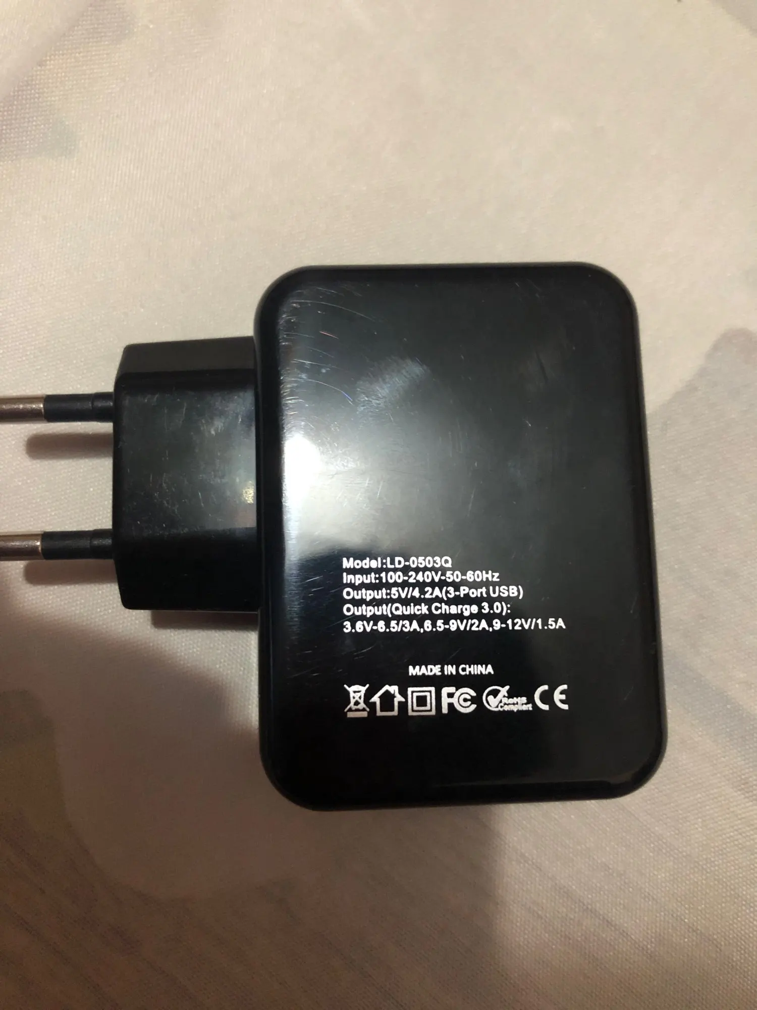 * 1x QC3.0 phone charger (EU Plug)