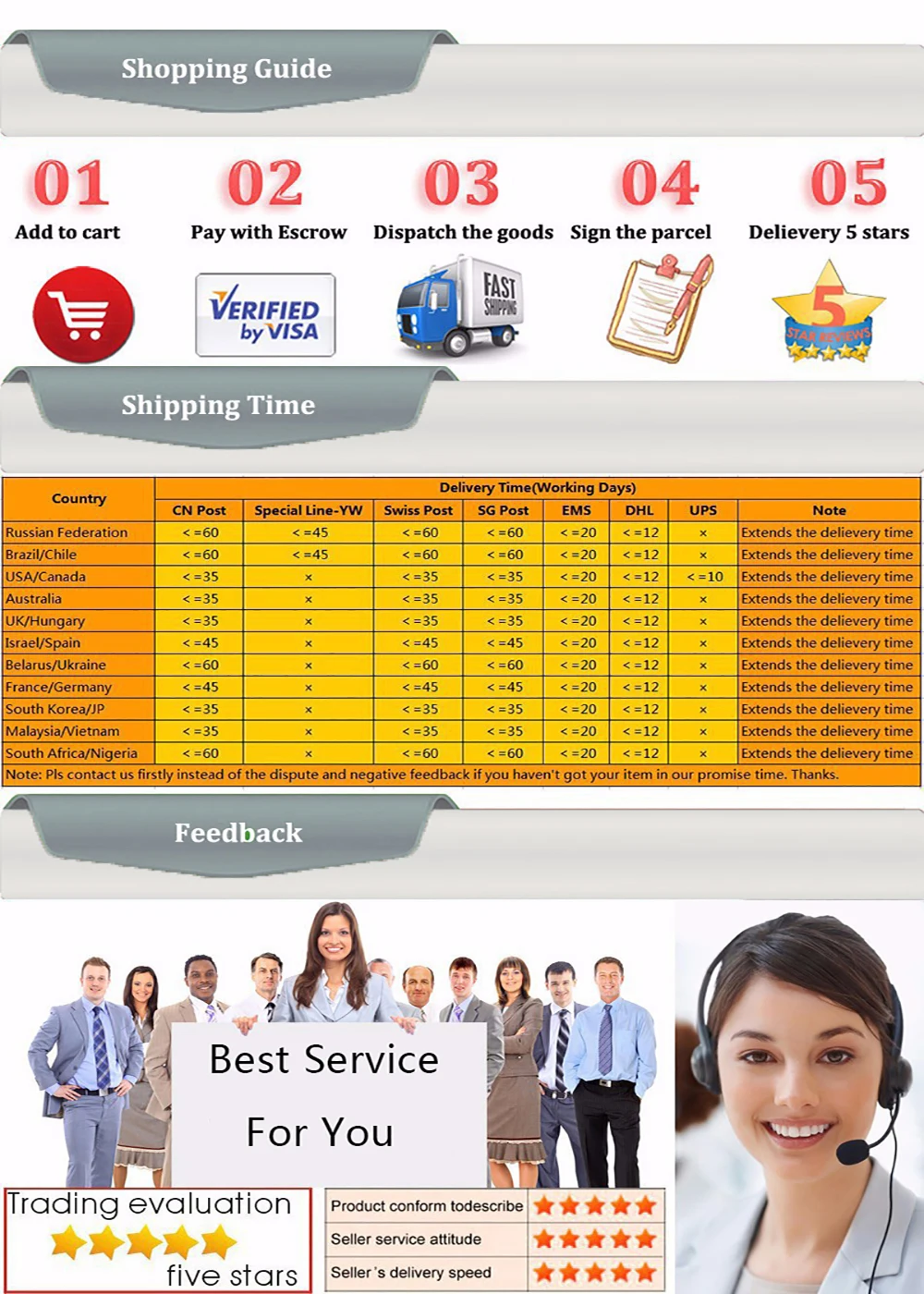 4. Любые проблемы, пожалуйста, свяжитесь с нами, прежде чем открыть спор или оставить нам отзывы. Мы постараемся сделать все возможное, чтобы решить проблемы, пока вы не удовлетворены.