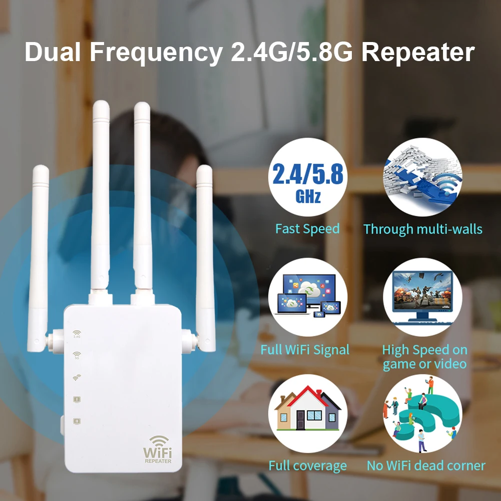 Этот двухдиапазонный ретранслятор Wi-Fi в основном используется для предоставления бесплатных услуг Wi-Fi в больших областях, таких как фабрики, общества, улицы и дома. Например, обычные бустеры могут быть расширены на расстояние 150-300 метров.