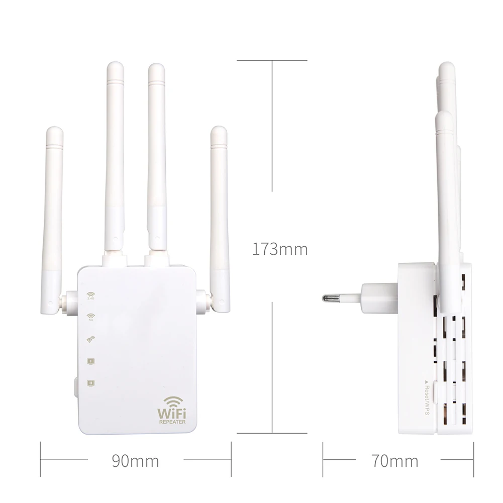 Если у вас есть более ретрансляторы или более мощный ретрансляторы, диапазон будет расширяться; Репитер Поддержка удаленного подключения к 2,4G и 5G беспроводных сетевых подключений, И может поддерживать скорость передачи до 2,4G или 5G 300M.