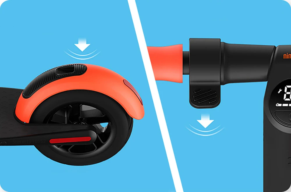 Новейший скутер Ninebot ES1L изготовлен из аллюминиевой ткани Новый англо мелкодисперсного порошка улучшает антикоррозионные свойства и делает текстуру поверхности более гладкой на ощупь.