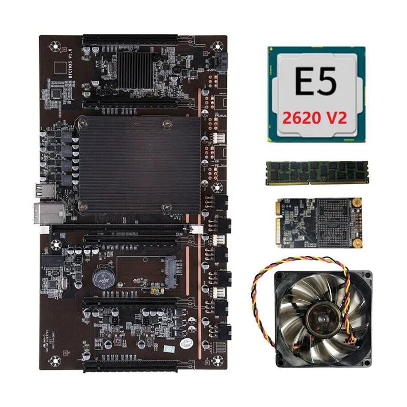 Brand new X79 BTC 5 Card Slot Mining Board +E5 2620 V2 2011 Pin CPU+RECC 4GB DDR3 Memory + MSATA 120G Hard Drive+CPU Cooling Fan Kit