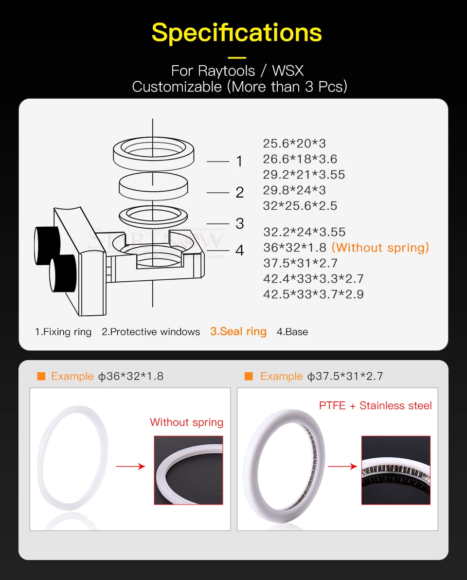 Материал:PTFE + нержавеющая стальНастраиваемый (более 3 шт.): минимальный заказ 3, если вам нужны другие размеры, пожалуйста, обратитесь в онлайн-службу поддержки клиентов