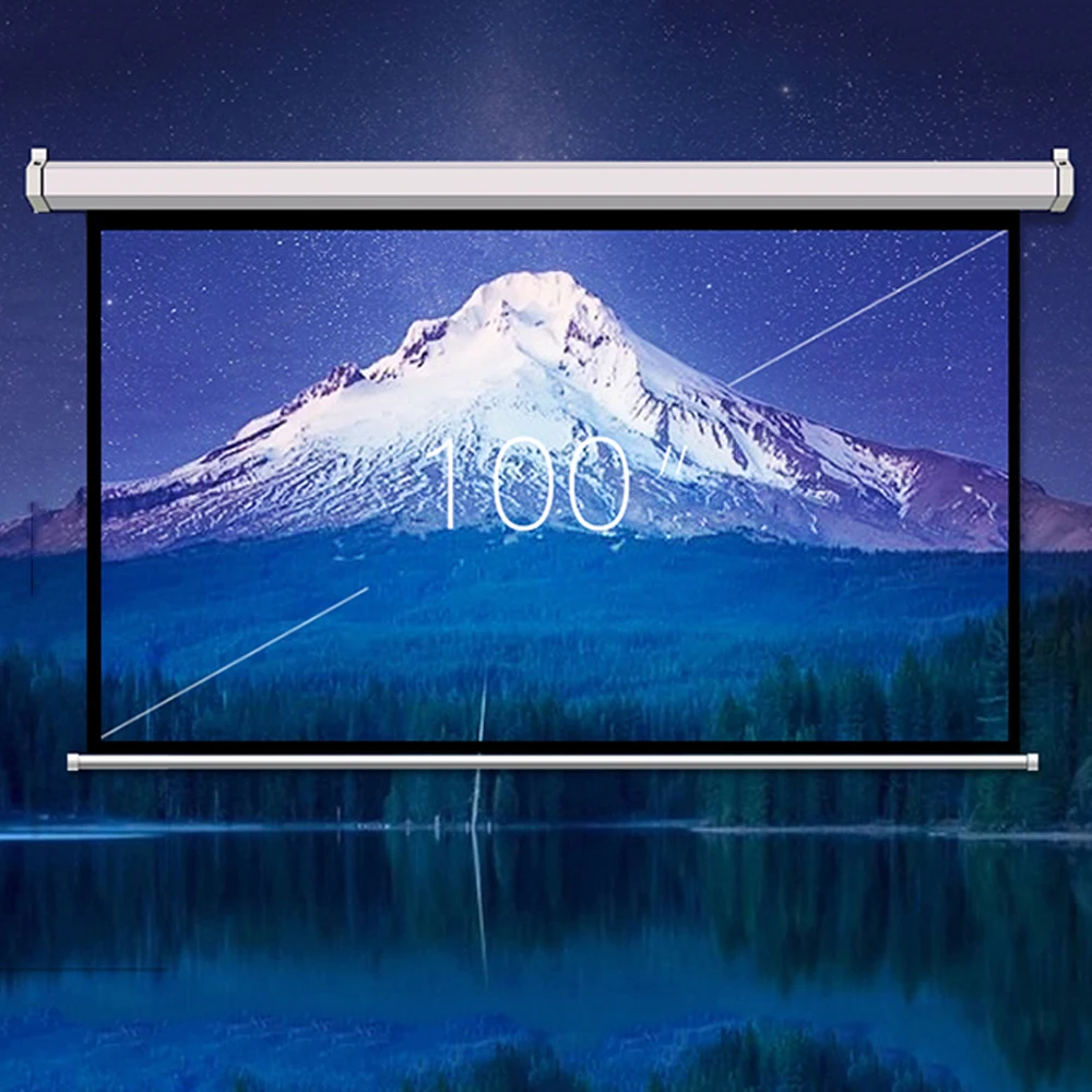 100 Inch 16:9 Wall Mounted Metal Curtain Electric Motorized Pull Down HD Projector Screen For Home Theater
