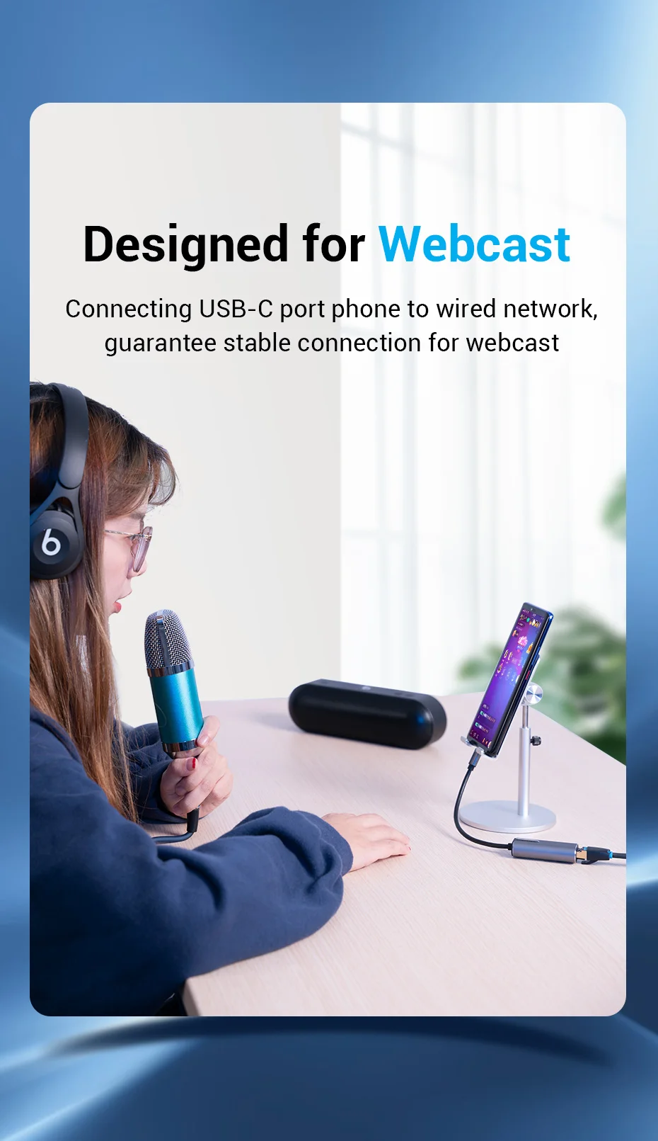 Подключение телефона с портом USB C к проводной сети, гарантированное стабильное соединение для веб-трансляции