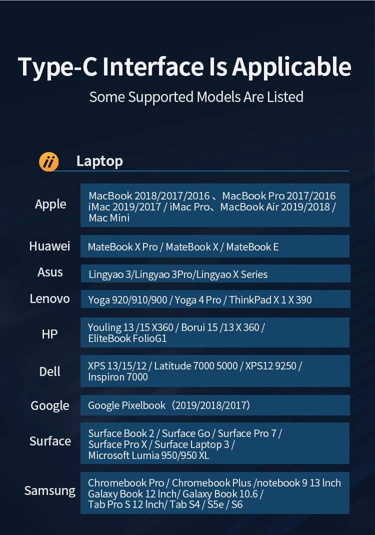 Samsung : Samsung Chromebook Pro / Chromebook Plus / Notebook 9 13 "/Galaxy Book 12"/Galaxy Book 10,6/Tab Pro S 12 "/ Tab S4 / S5e / S6