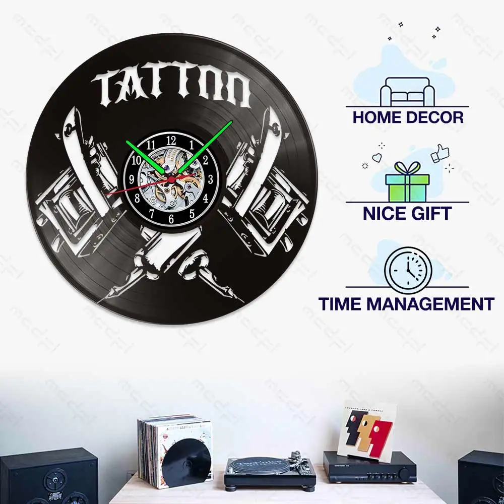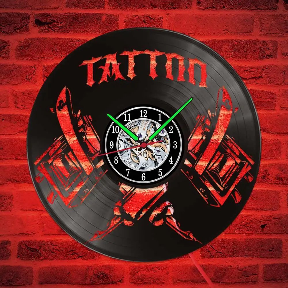 Настенные часы с виниловыми дисками и татуировками, светодиодные Винтажные Украшения для гостиной, лофт, интерьер, дом, деко, домашний дизайн, специальные предложения