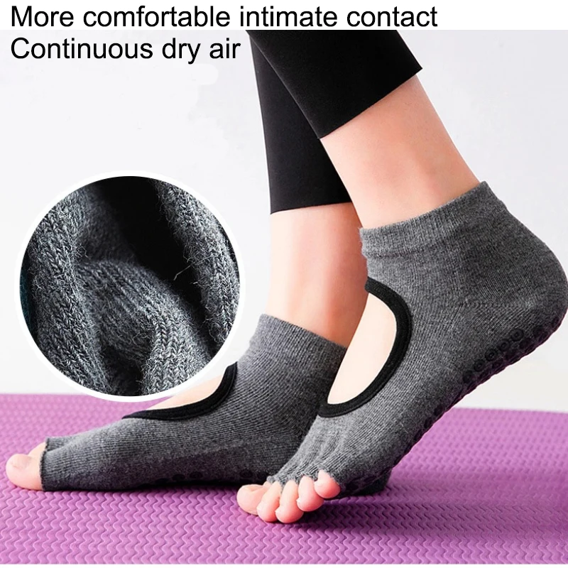 Носок спроектирован с открытым носком, который позволяет ногам быть непосредственно с ковриком для йоги