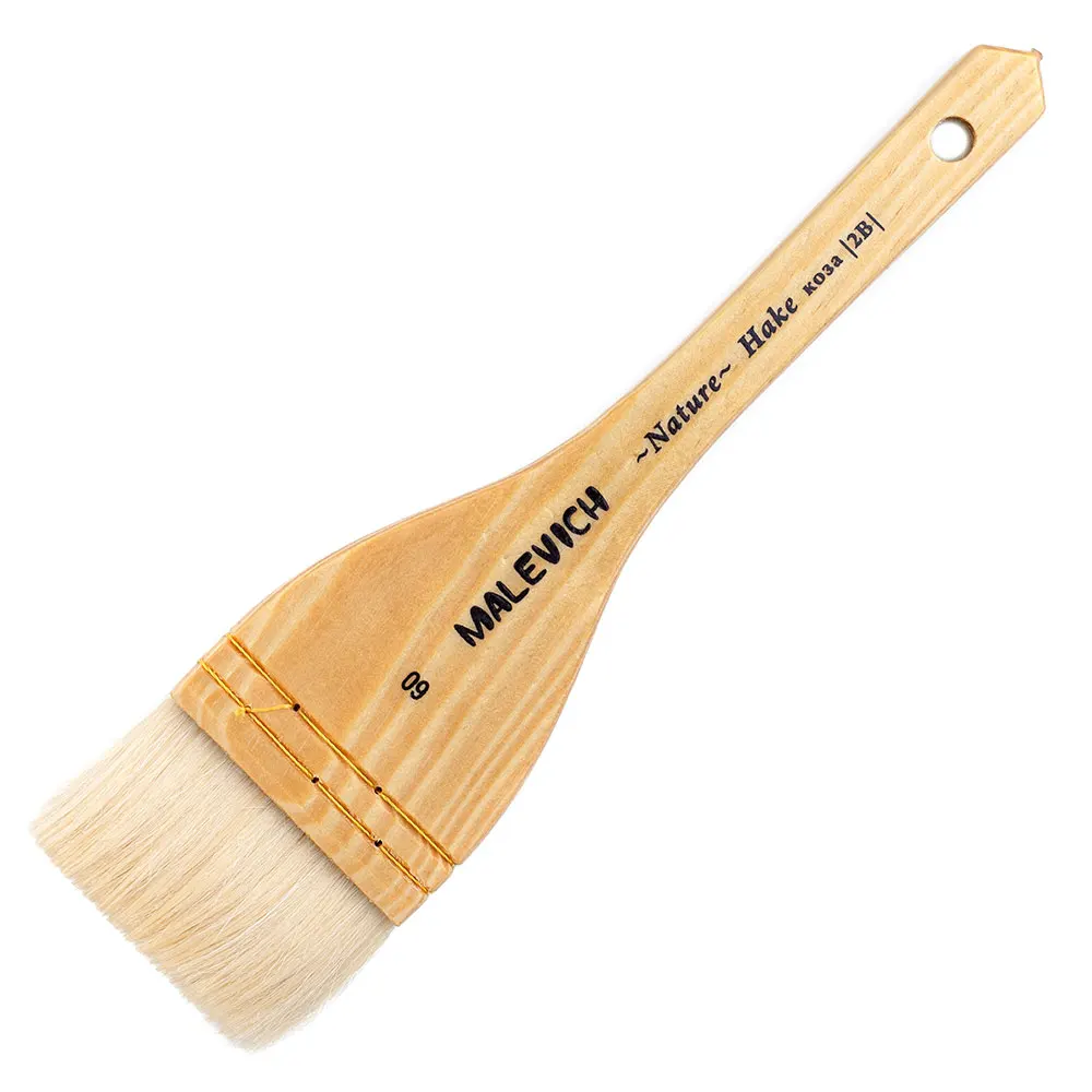 Флейц (широкая мягкая плоская кисть) из мягкого козьего ворса отлично подходят для смачивания большого акварельного листа, растяжки и набирания фона. Подходит она и для нанесения краски одним мазком или для свободной живописи заливками.