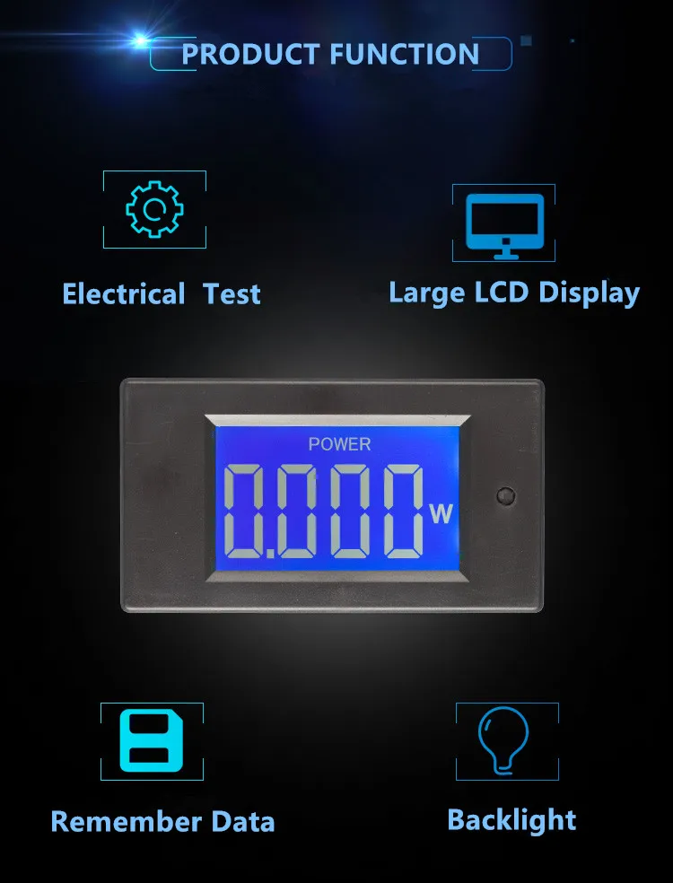 Интерфейс дисплея-Большой ЖК-экран, дополнительные большие шрифты для отображения напряжения, тока, мощности, используйте кнопку для переключения параметров.