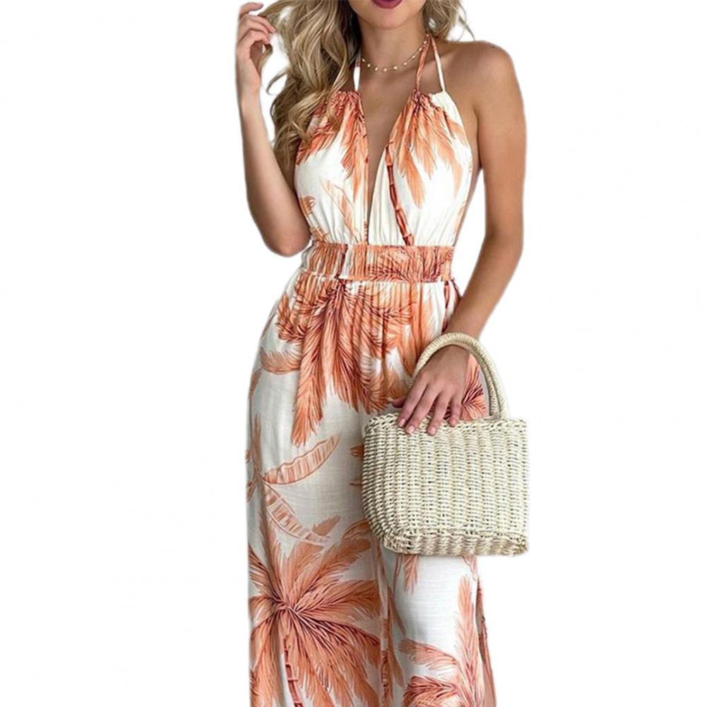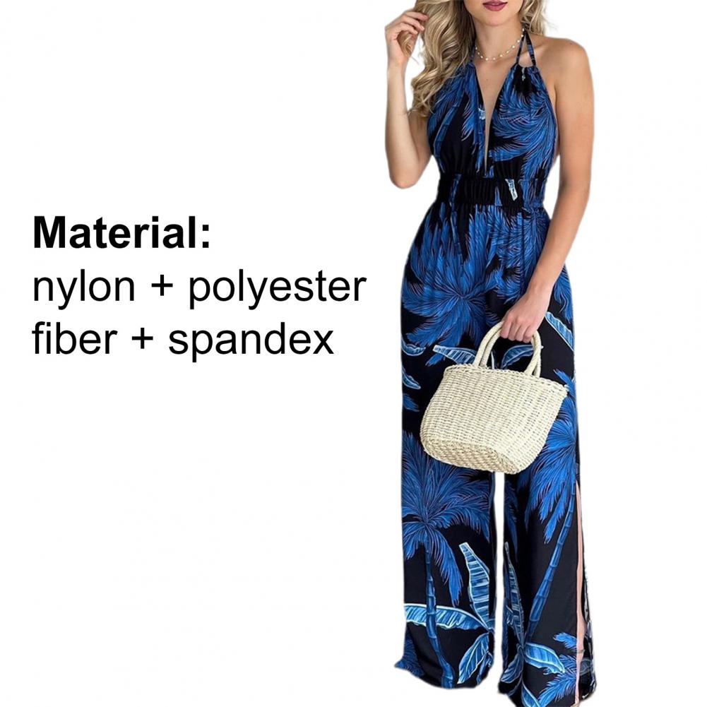 Сексуальный женский комбинезон без рукавов с цветочным принтом в виде дерева, с широкими штанинами и разрезом, с открытой спиной, Свободный комбинезон, вечерние комбинезоны