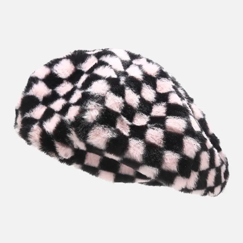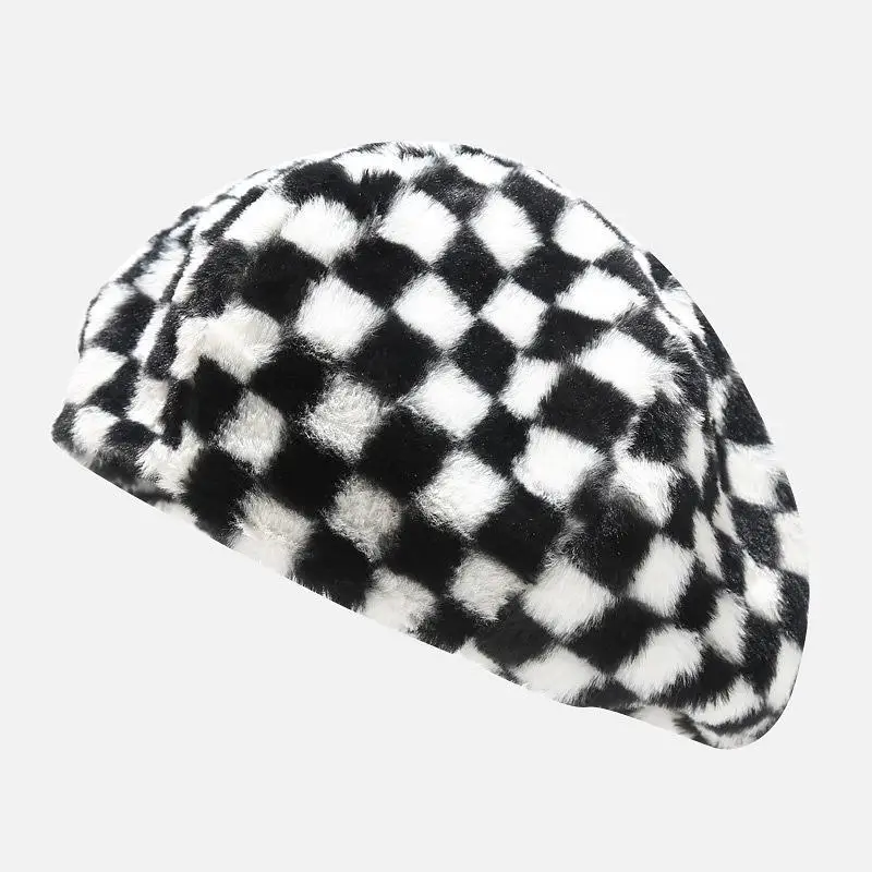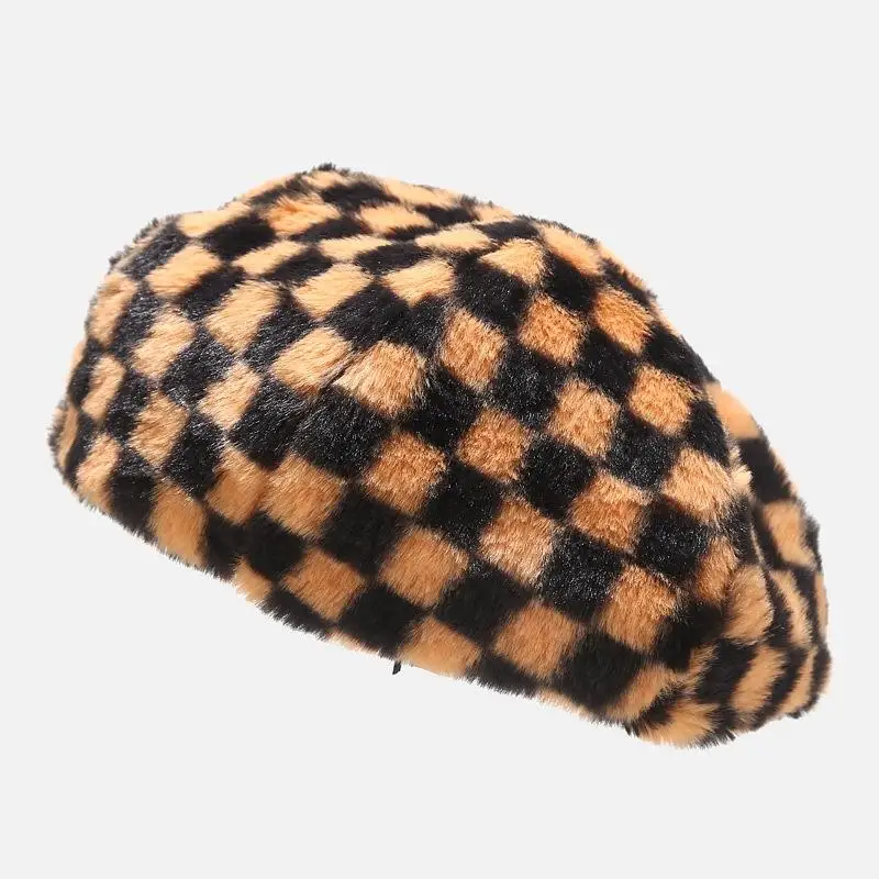 Клетчатый принт, женский берет, шапка из искусственного бархата, зимние теплые береты, шапки для женщин, шапка в виде тыквы, трендовая французская шапка, берет в клетку