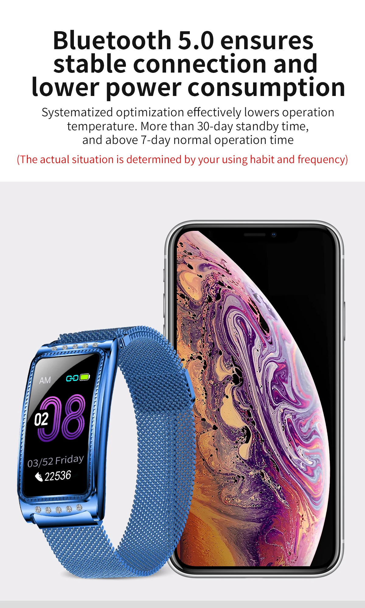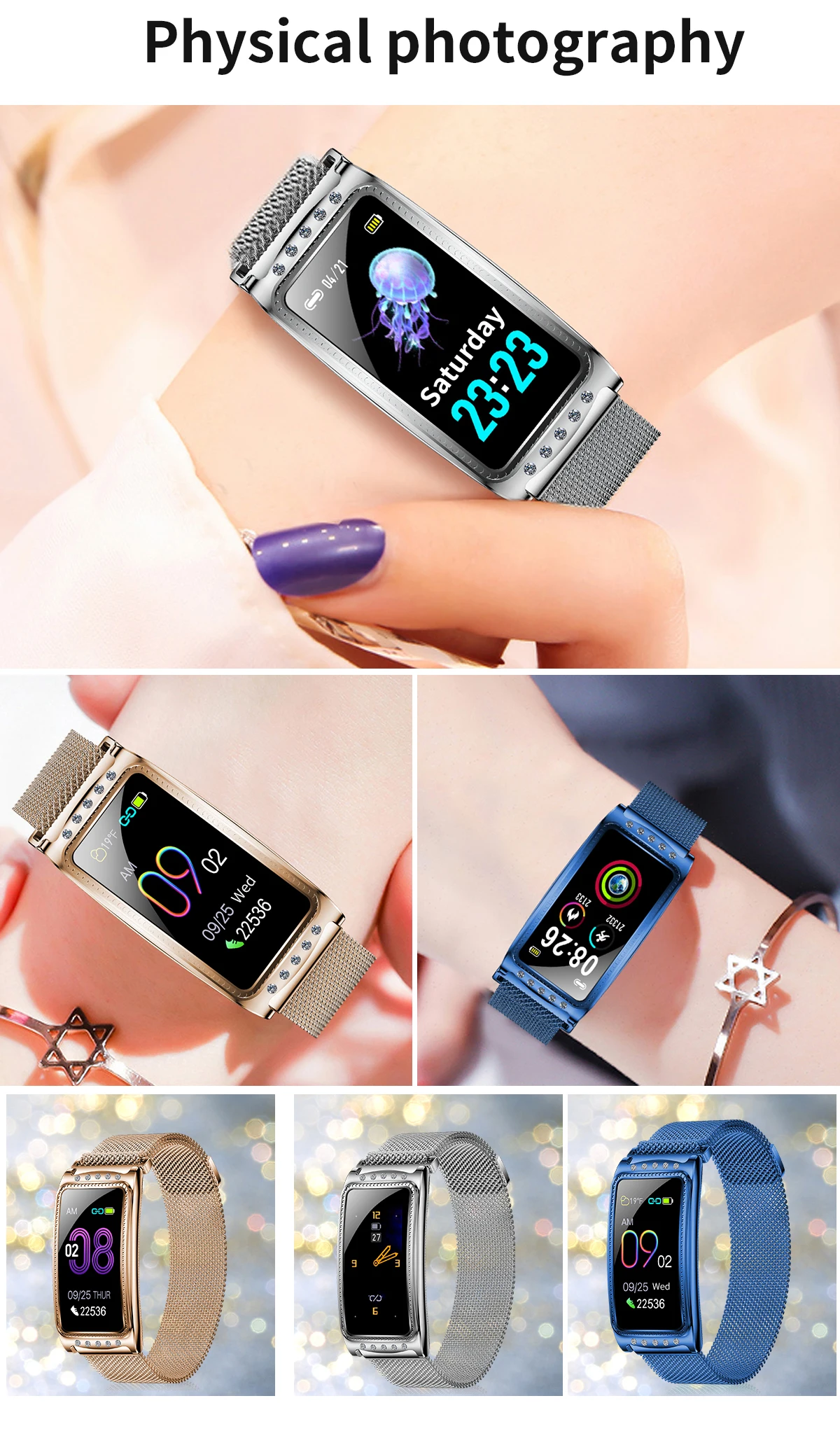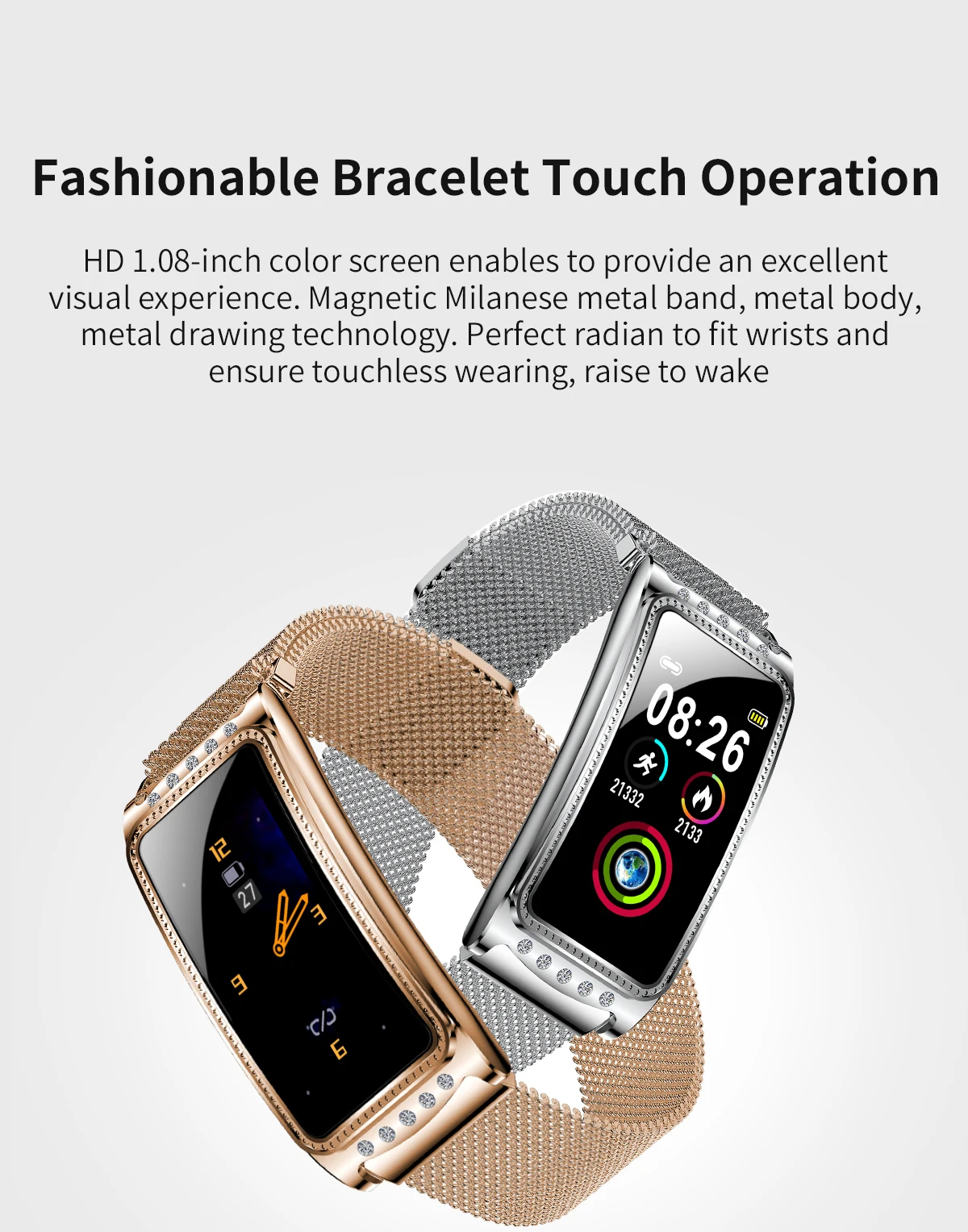 Женский модный браслет, цветной экран, частота сердечных сокращений, кровяное давление, уровень кислорода в крови, режим мульти-упражнений