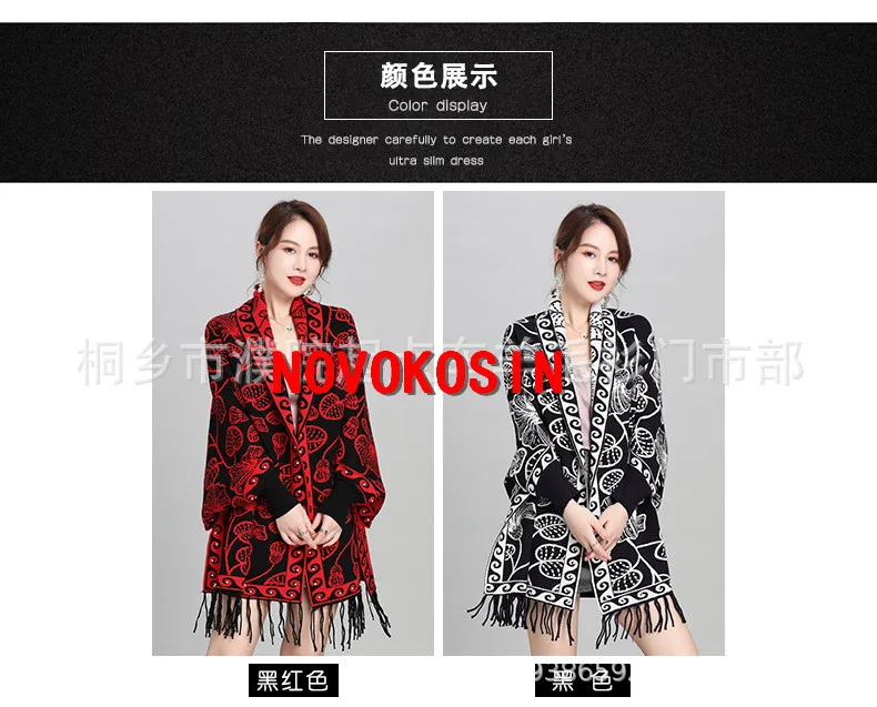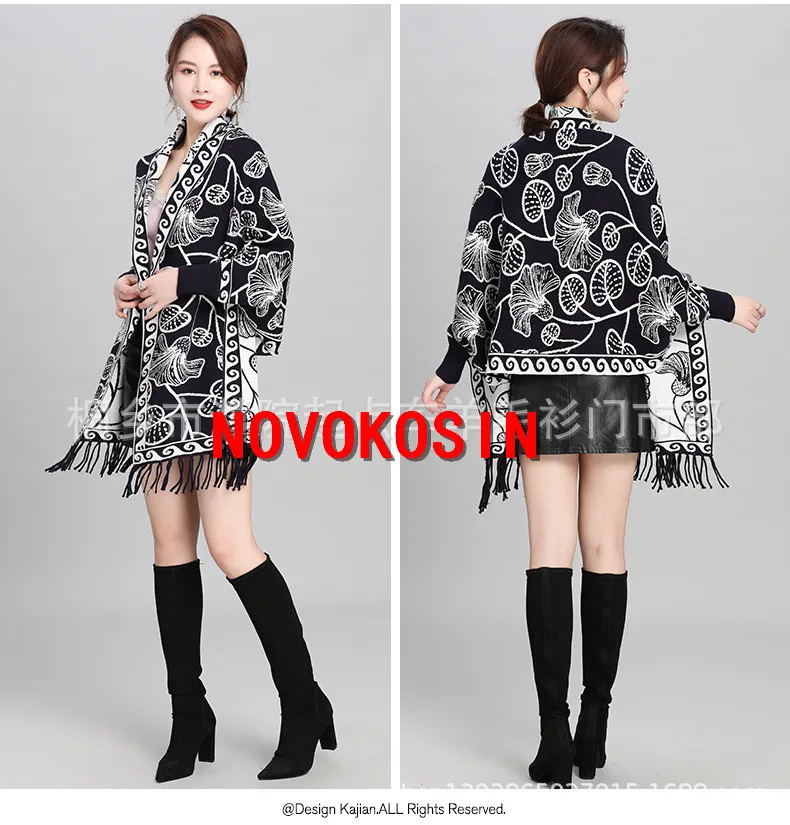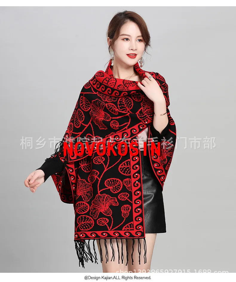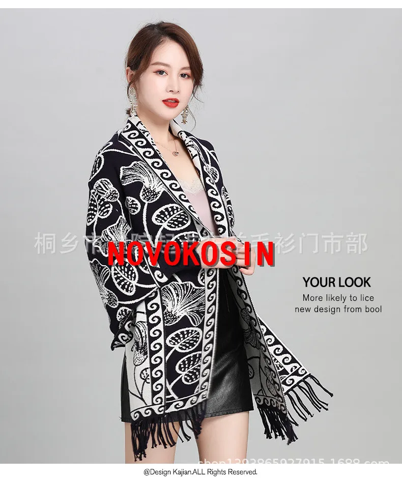 2021 зимняя трикотажная верхняя одежда Двусторонняя Цветочная жаккардовая ткань пончо женский жемчужный плащ осеннее женское длинное трикотажное пальто
