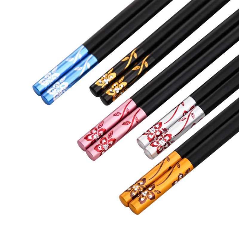 Многоразовая поддержка китайских пластиковых палочек для еды Kawai Cherry Blossom Стекловолоконные палочки для суши японская Корейская кухонная посуда