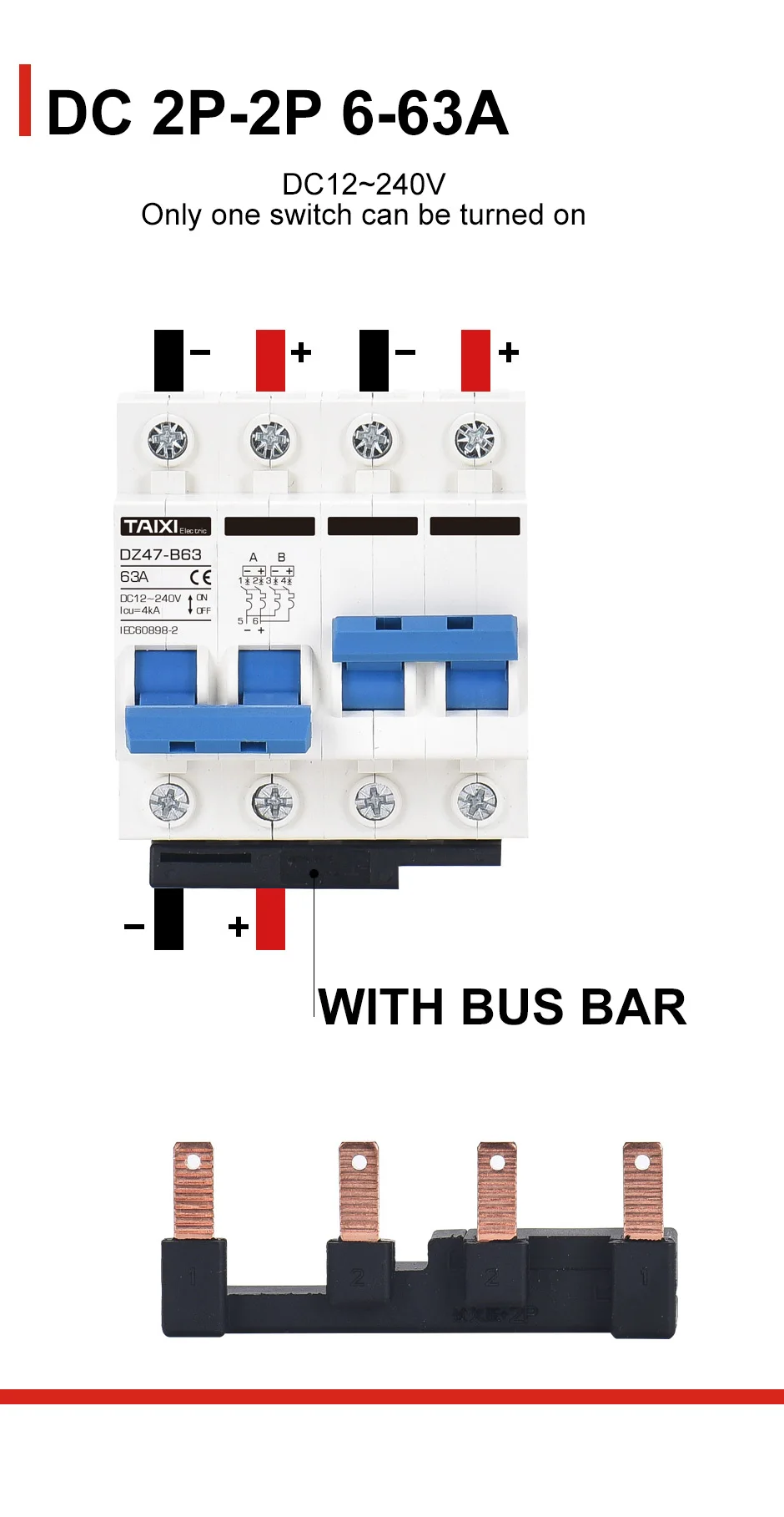 ● Полярный номер: 1 P (1 полюс), 2P (1 полюс), 1 P + 1 P (двойной выключатель питания с функцией блокировки), 2P + 2P (двойной выключатель питания с функцией блокировки)