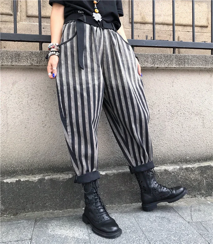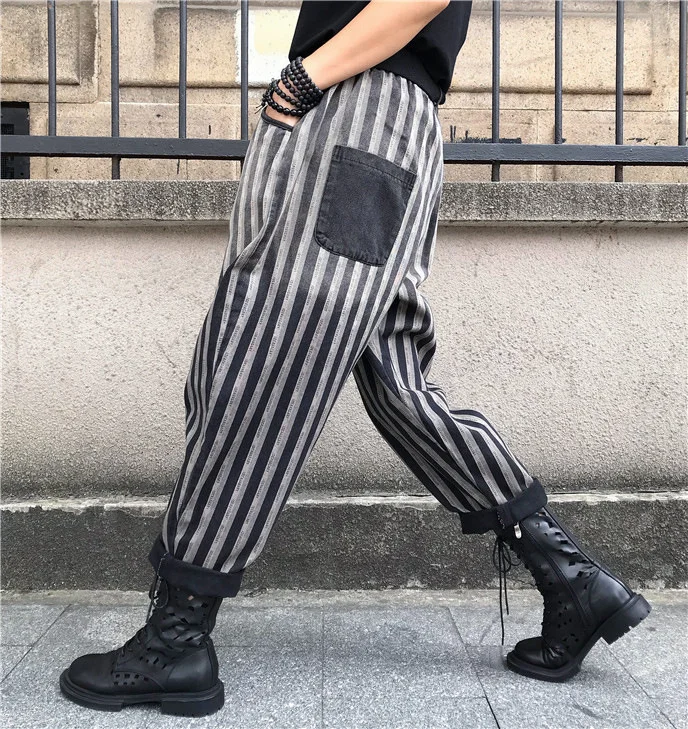 Джинсовые брюки в полоску; Женские свободные винтажные джинсы
