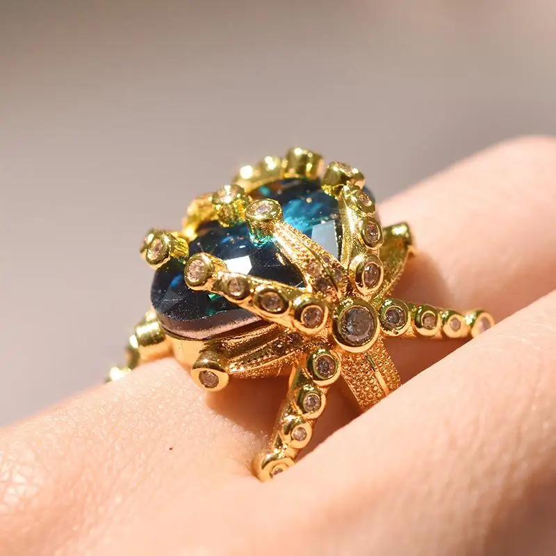14k желтое золото Цвет рубиновое кольцо с бриллиантом для женщин Павлин голубой топаз камень Изысканные ювелирные изделия Bizuteria серебряное обручальное кольцо драгоценный камень