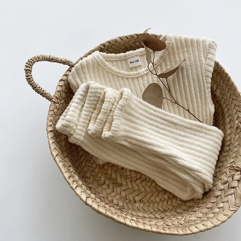 Для маленьких мальчиков и девочек на осень-зиму, теплая одежда трикотажная кофта, свитер дна рубашки для мальчиков + костюм со штанами, детская одежда, комплект из 2 предметов одежда для малышей