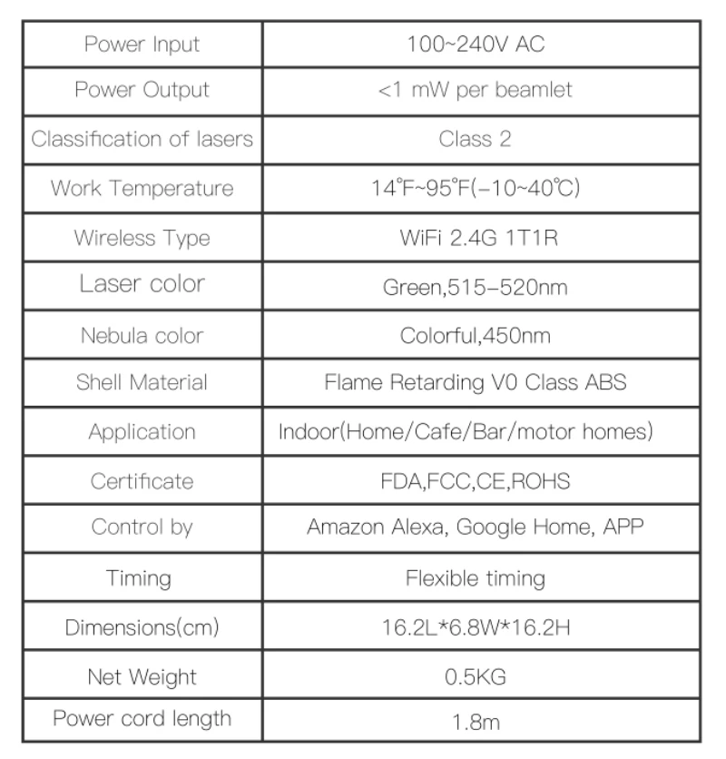 1 * Звездный проектор, 1 * USB кабель для передачи данных, 1 * руководство на английском языке