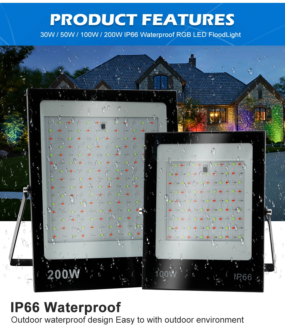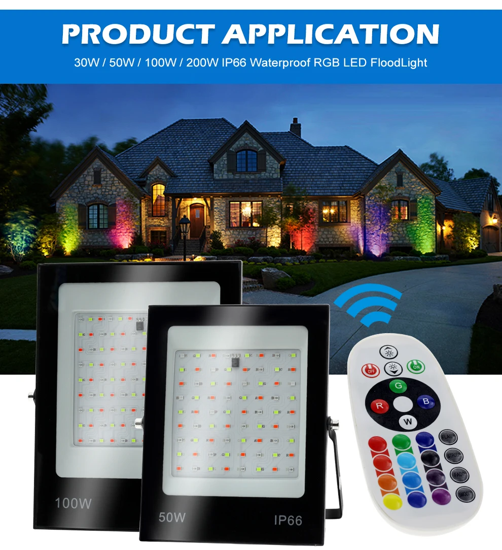 RGB Светодиодный прожектор 220 в 30 Вт 50 Вт 100 Вт 200 Вт наружный настенный светильник отражатель IP66 водонепроницаемый садовый пейзаж освещение RGB прожекторы