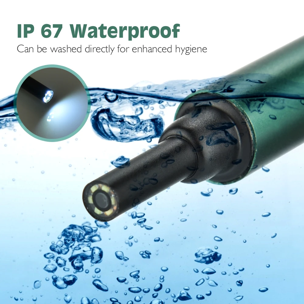 Этот зонд является водонепроницаемым IP67, поэтому вы можете очистить его непосредственно водой. Он также позволяет сохранять фотографии и видео, вы можете отправить их профессионалу для быстрой и легкой консультации.