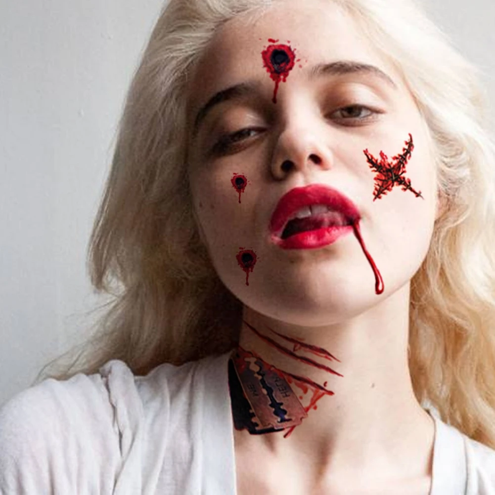 10 шт./компл., тату на Хэллоуин, с кровавой раной, трик, страшные, водонепроницаемые, временные тату, сделай сам, поддельные татуировки, вечерние украшения на Хэллоуин
