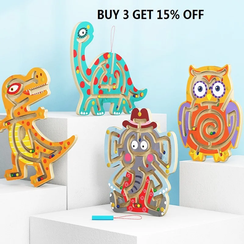 Животные стиль деревянная игрушка Дети Магнитный трек лабиринт головоломки доска Дети Обучающие Монтессори игра-головоломка