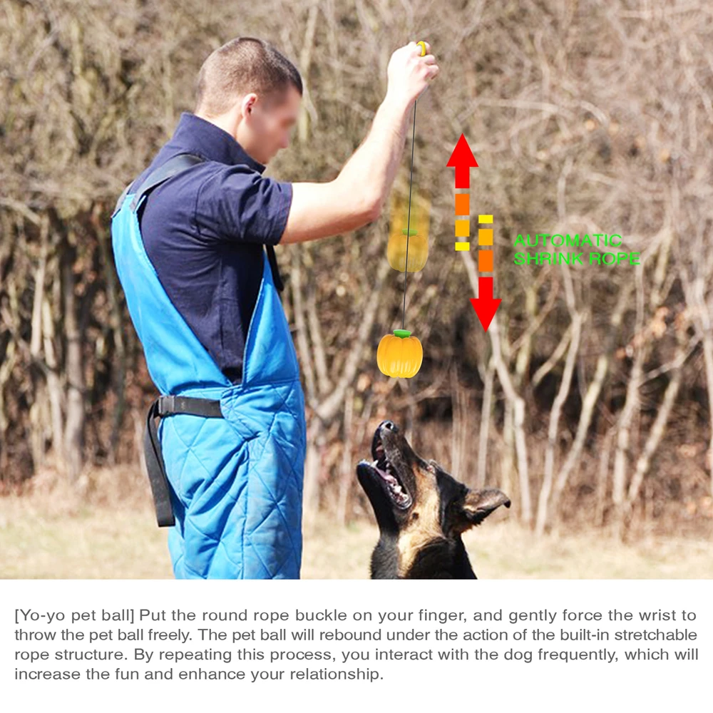 3. Наденьте пряжку с круглой веревкой на палец и свободно Бросьте мяч на запястье с силой на светильник. Мяч для домашних животных отскакивает под действием встроенной выдвижной веревки. Повторите этот процесс таким образом, взаимодействуйте с собакой, Повышайте интерес к продукту и улучшайте отношения между владельцем и собакой.