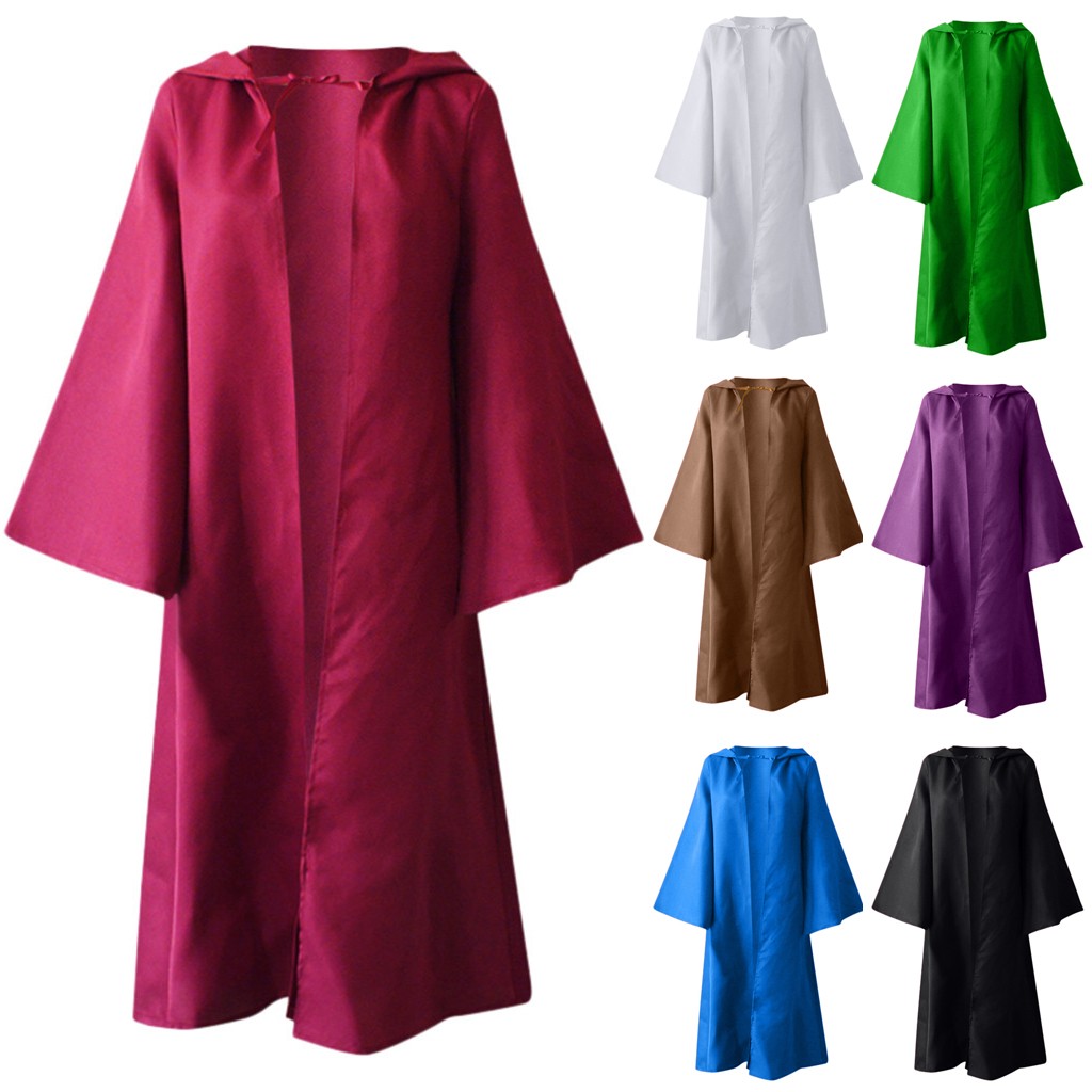 Женский Мужской винтажный Готический однотонный плащ с капюшоном на повязке, верхняя одежда для костюмированной вечеринки