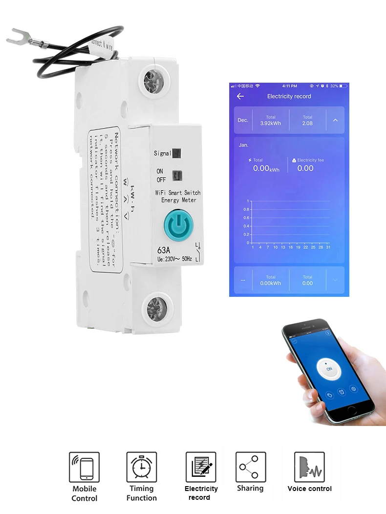 1P din-рейка WIFI умный измеритель энергии Потребляемая мощность кВтч метр автоматический выключатель таймер реле Вольтметр для умного дома