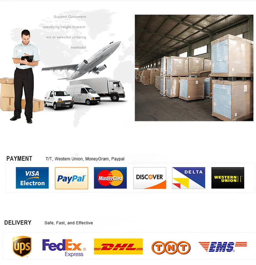 A:Мы принимаем оплату Paypal Western Union MoneyGram Master Card Cerdit Card Boleto Alipay WeChat Pay ABC ICBC Bank.