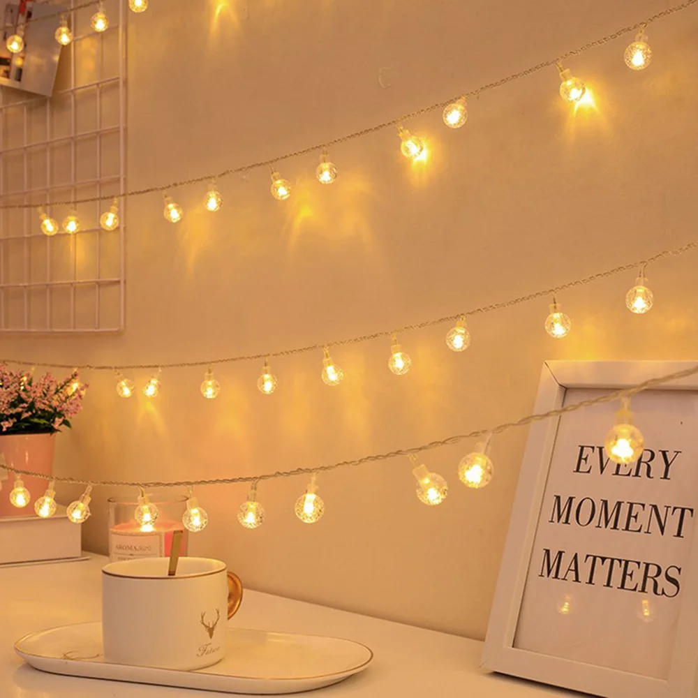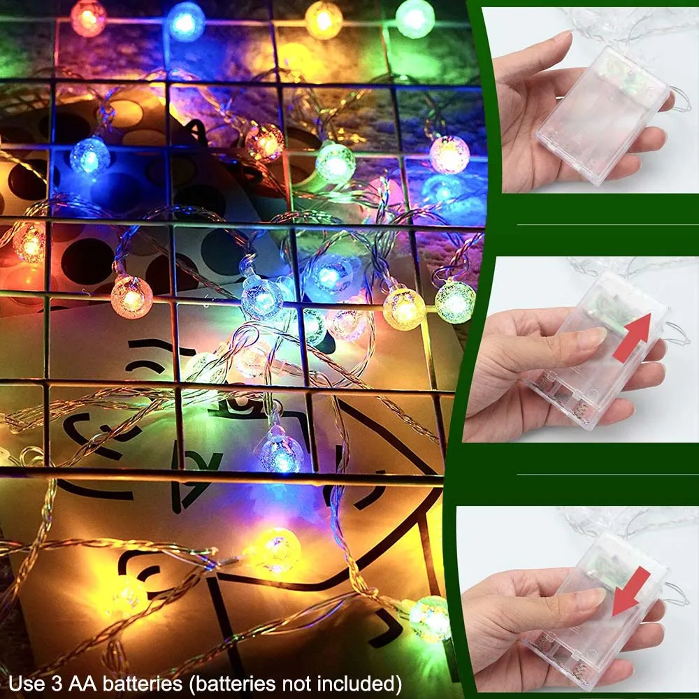 3 м/10 футов с 20 светодиодами,6 м/20 футов с 40 светодиодами, Достаточно долго для любого использования. Размер хрустального шарика составляет 0,67 дюйма, изготовлен из высококачественного прозрачного ПВХ. 6 дюймов расстояние между каждым хрустальным шариком.