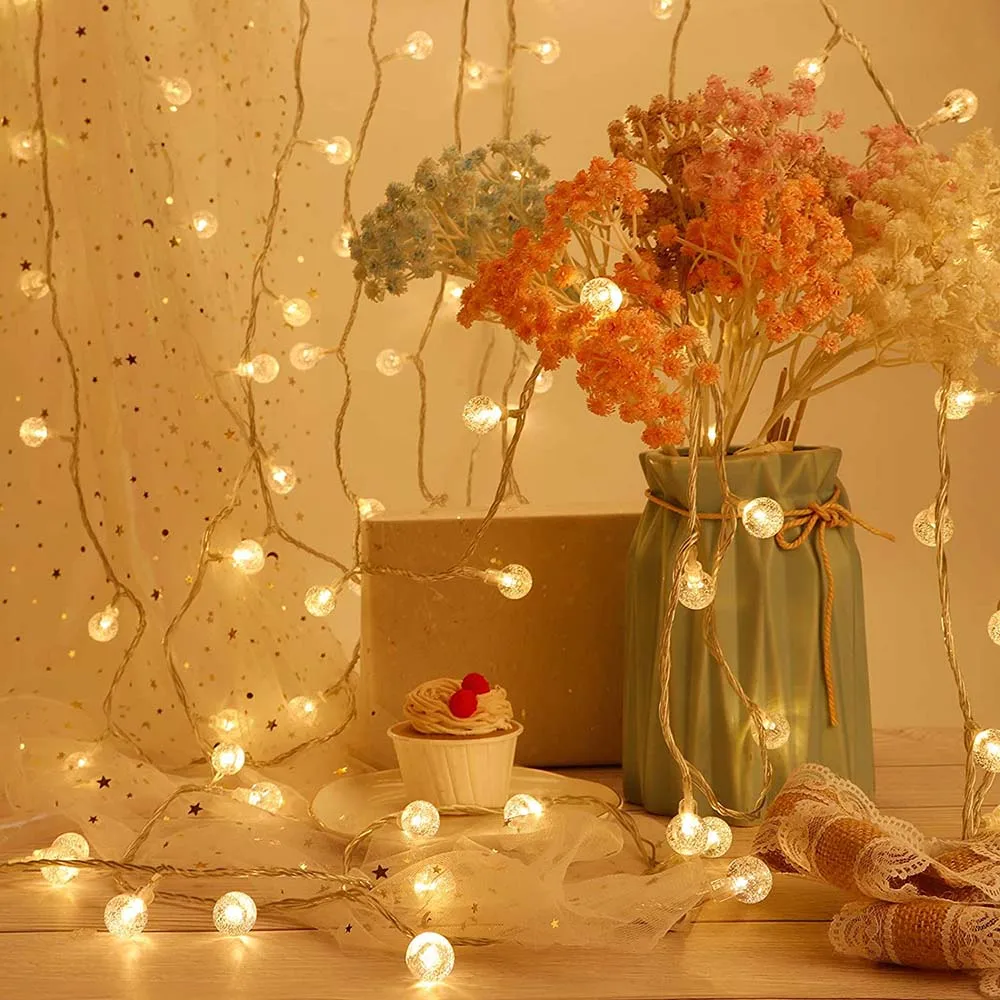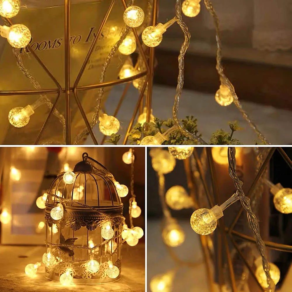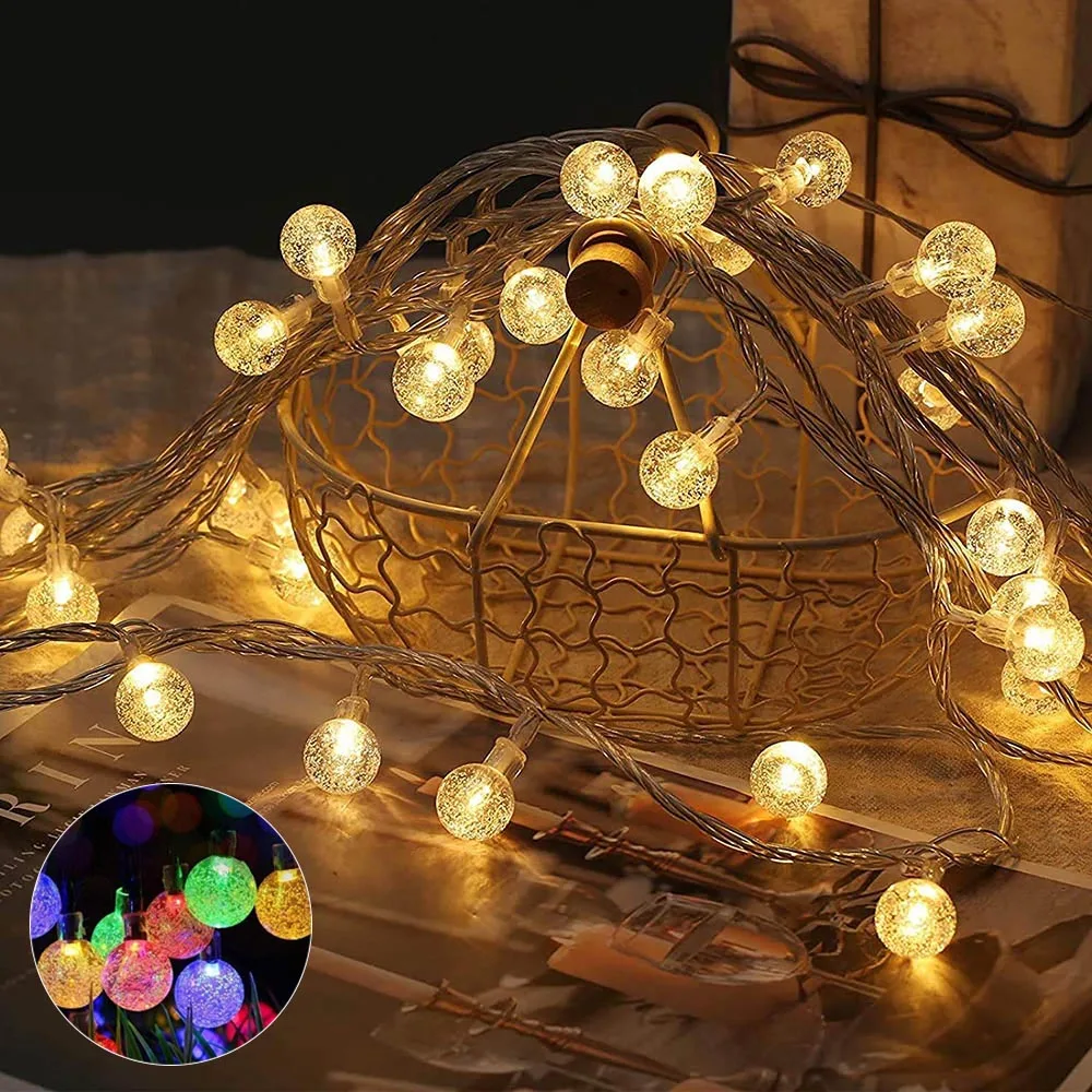 СВЕТОДИОДНЫЕ гирлянды с хрустальным шариком, 10 футов, 20 футов, 20 футов, 40 светодиодов, теплые, белые, сказочные, Gypsophila, шарики с пузырьками, на батарейках, Рождественские огни, мерцающие, многоцветные, для помещений, для отдыха, украшения для спальни, свадьбы, дома, дома, вечерние, Рождественская елка