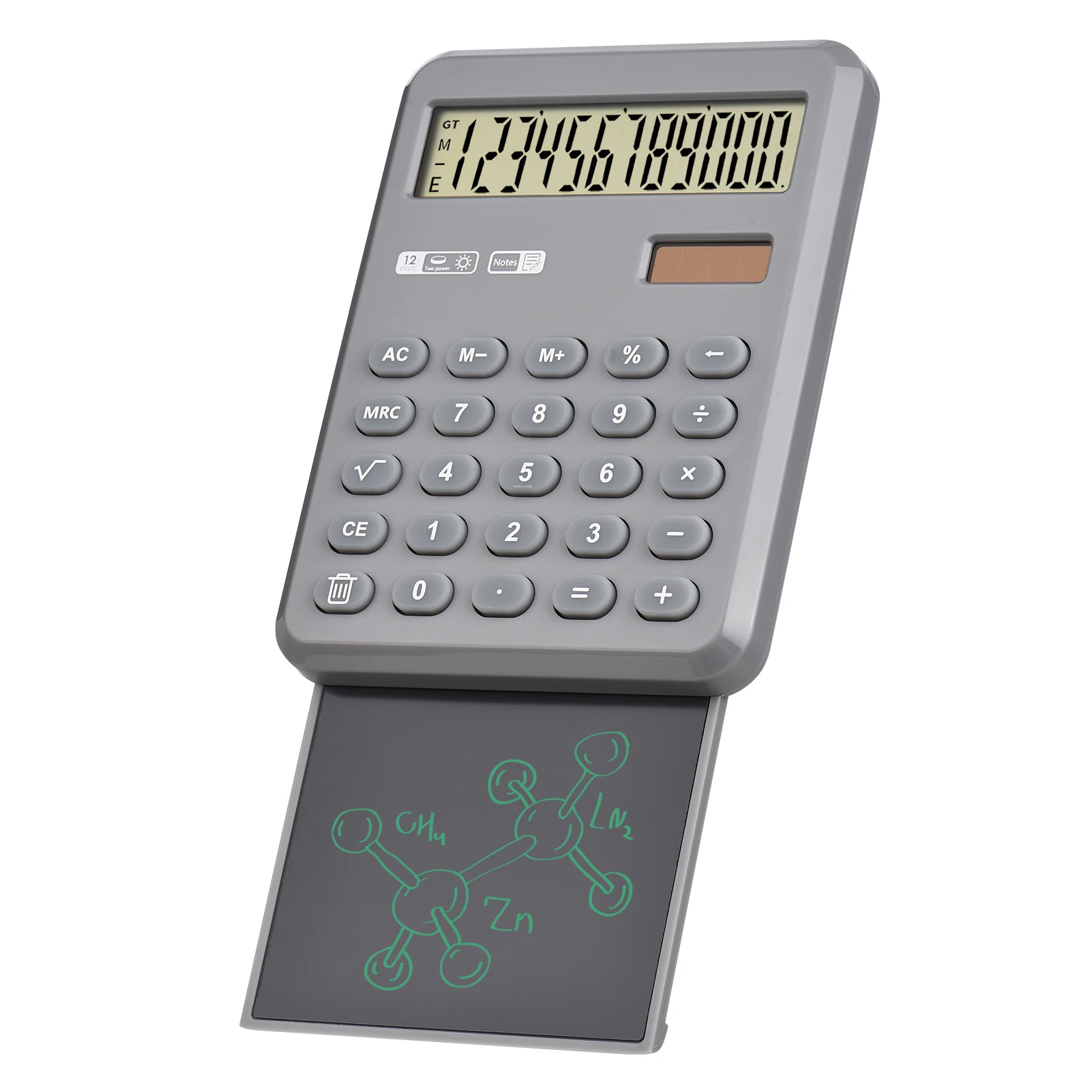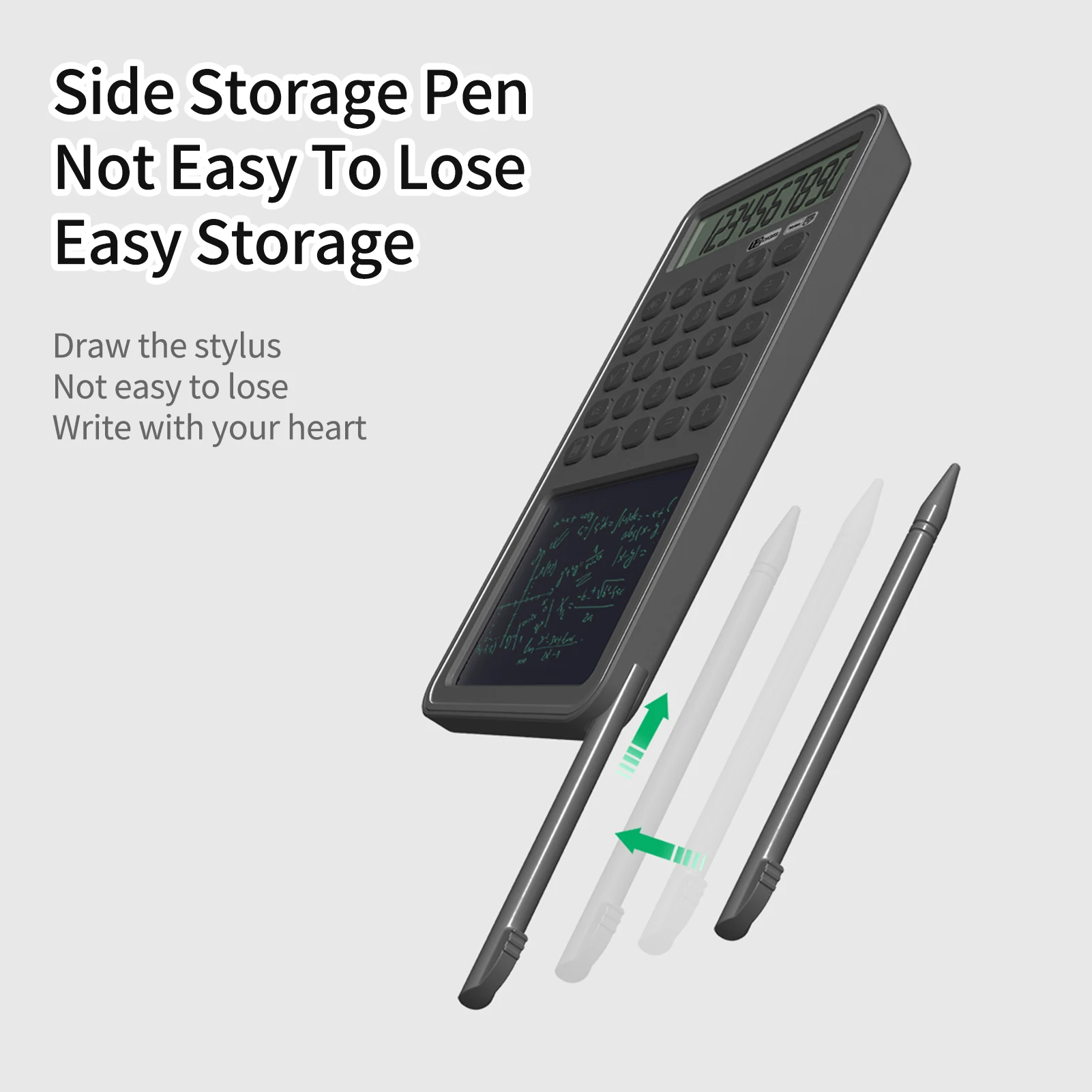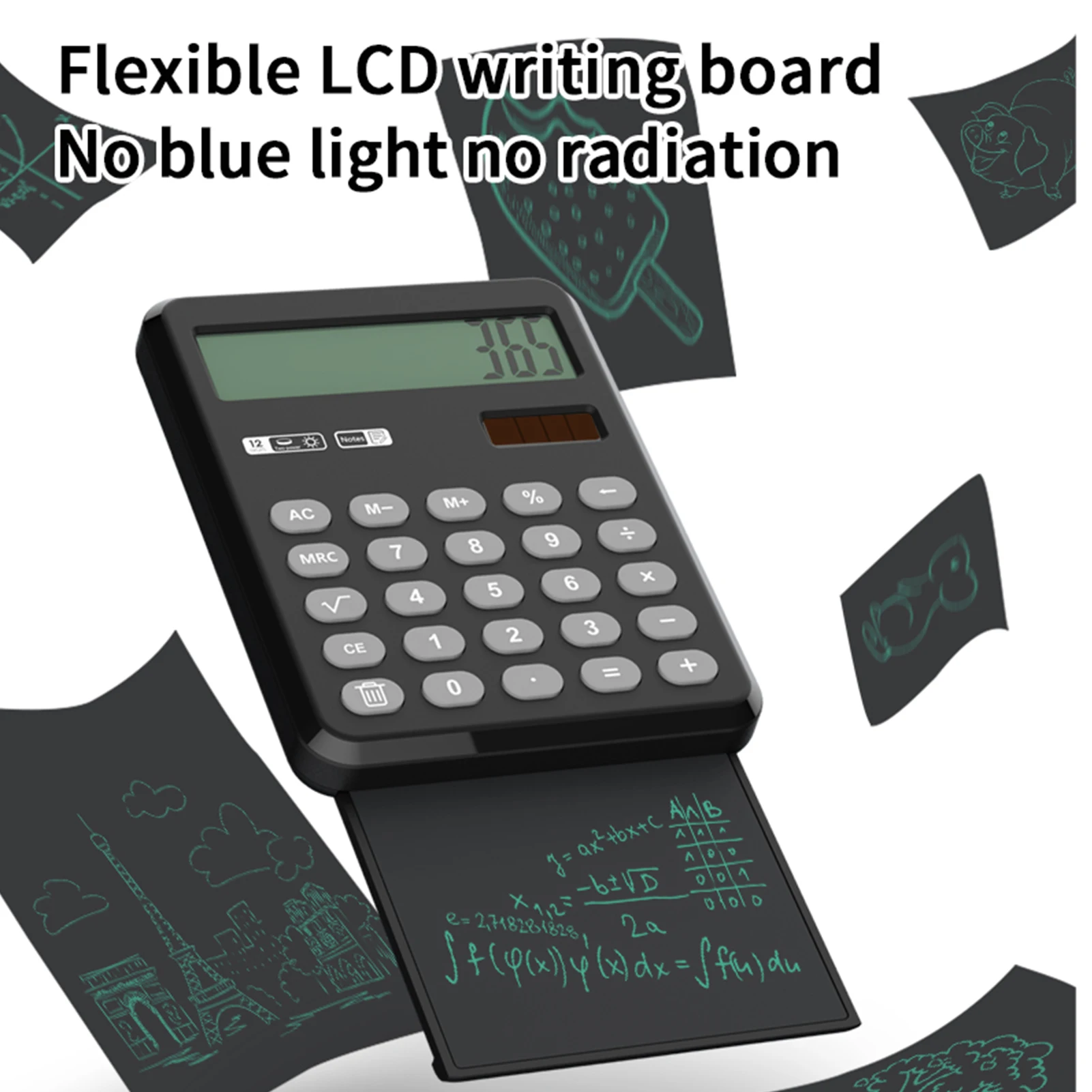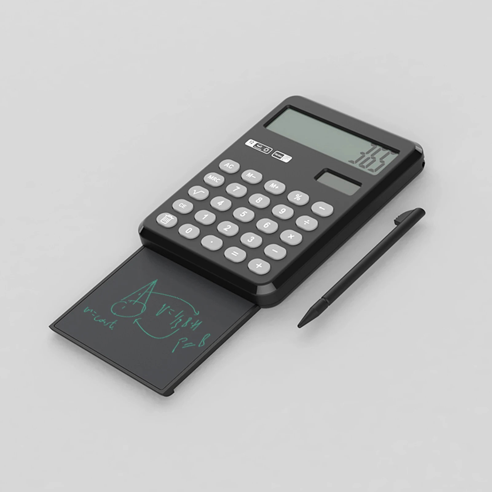 Калькулятор с блокнотом для письма-комбинация калькулятора и доски для рукописного ввода, которая обеспечивает заметное место во время вычисления, улучшает учебу и эффективность работы.