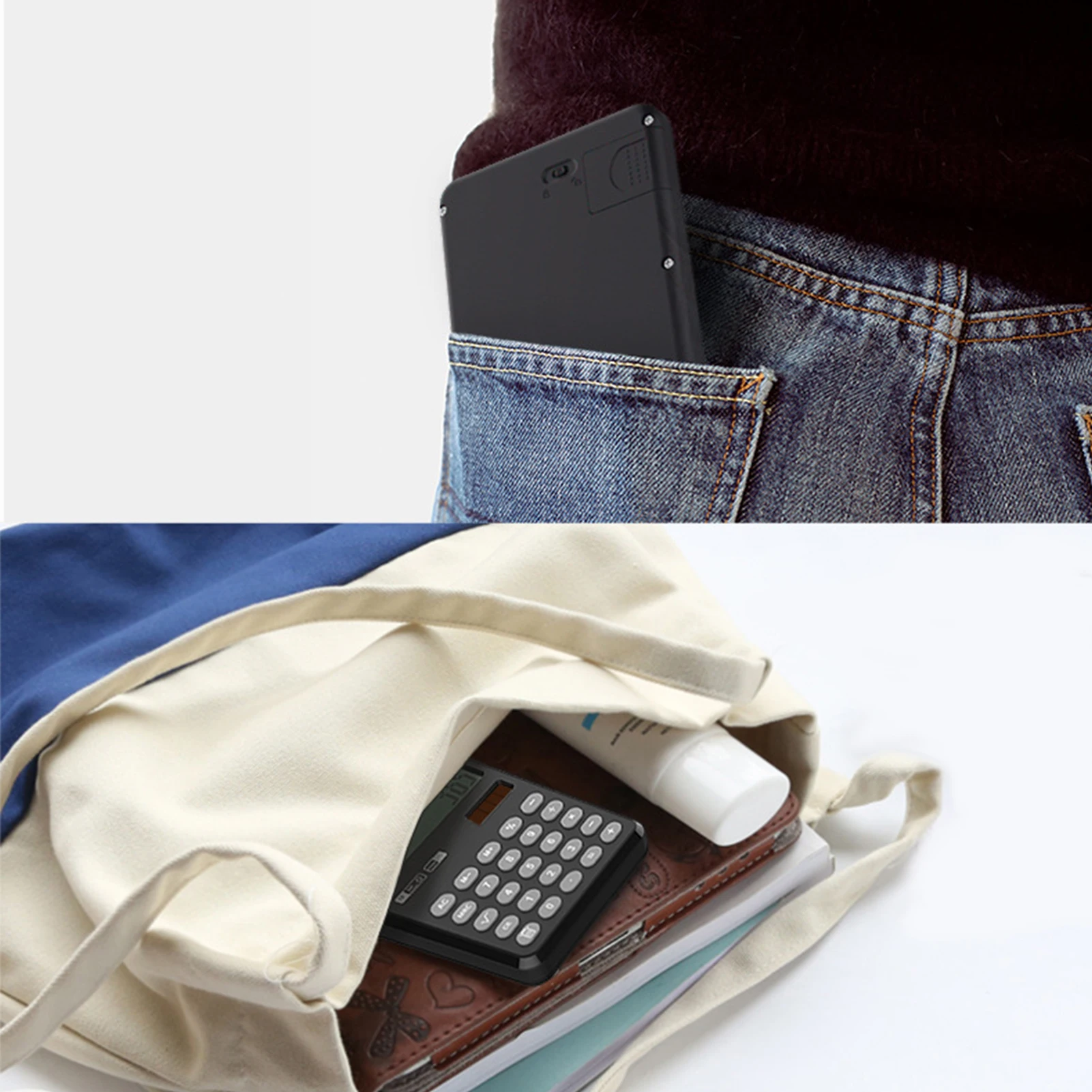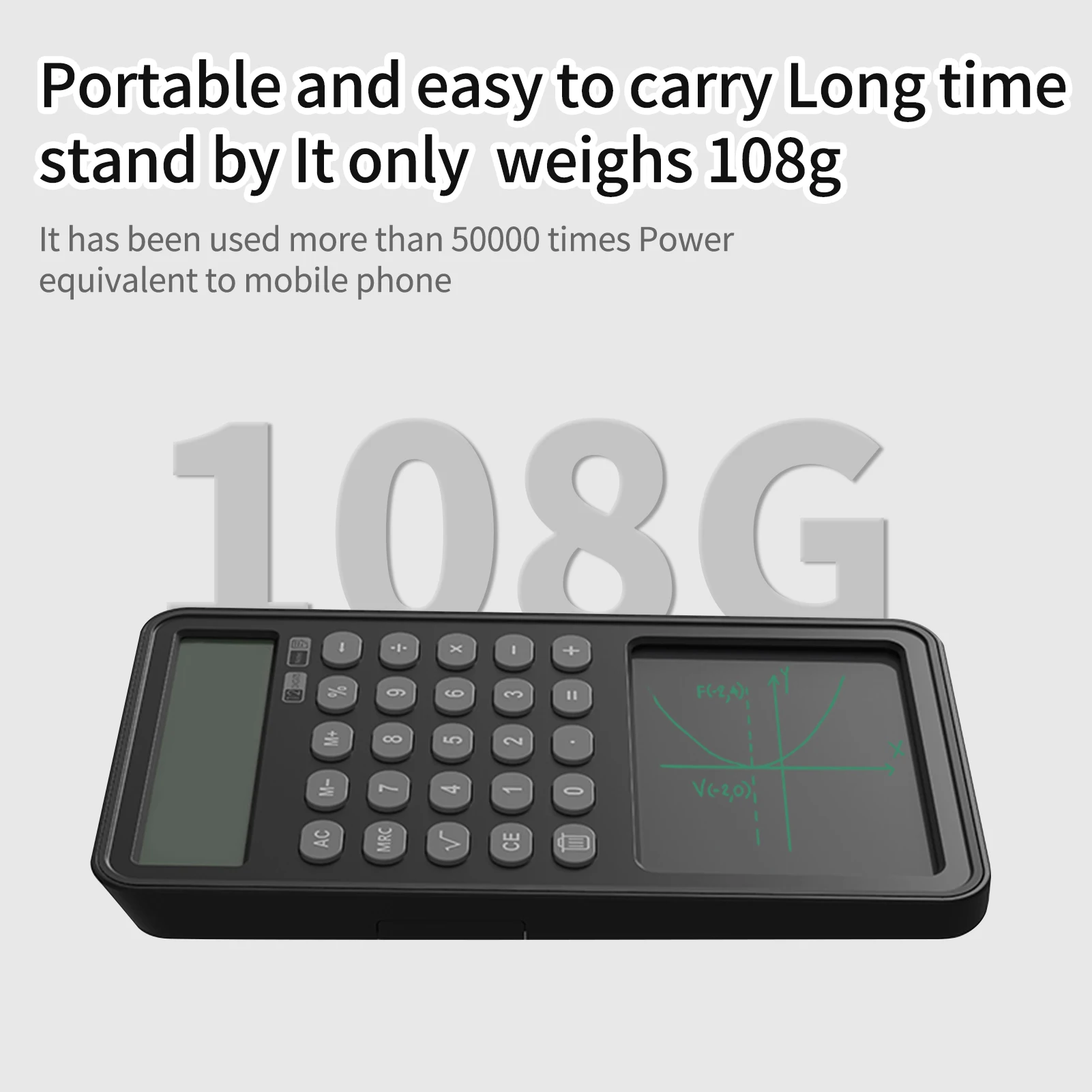 Удобный и Портативный-калькулятор вес только 108g (3,8 oz), очень компактный, что вы можете носить с собой в сумке. И используйте его сразу же, когда это необходимо, удобно делать заметки на телефонные звонки, быстрые заметки и минуты встречи.