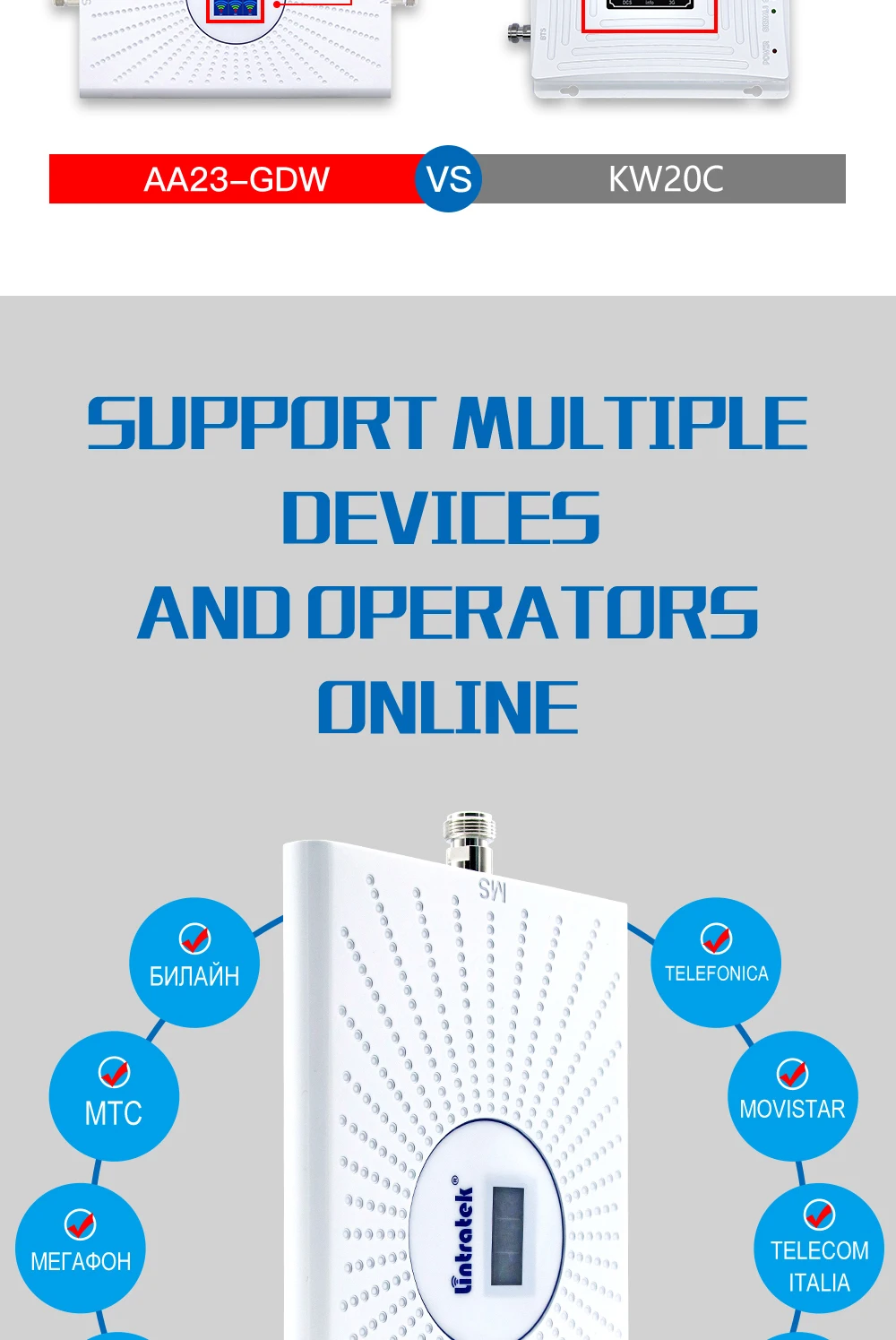 Lintratek Tri-Band 4G Signal Amplifier 850 1700 1900 4G Repeater Cell Phone Amplifier Mobile Signal Booster Kits