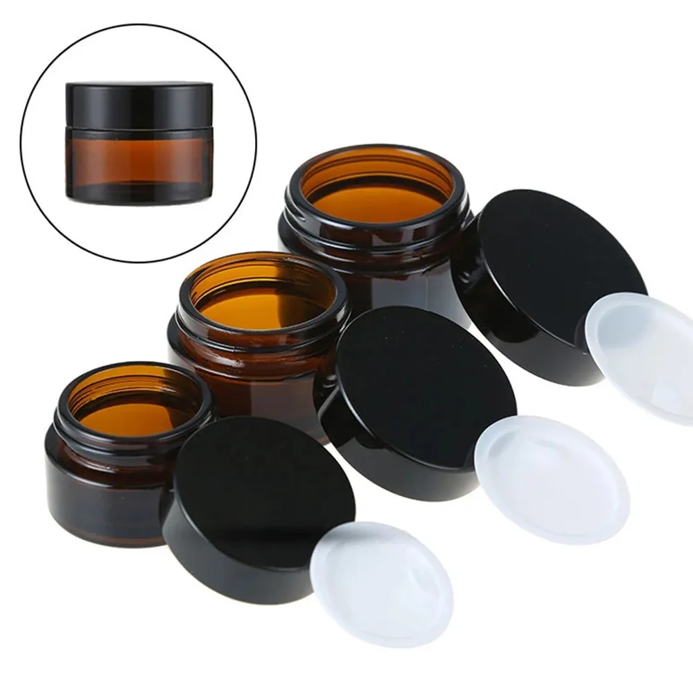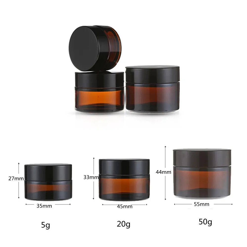 1). Название продукта: янтарная стеклянная Косметическая банка с черной крышкой