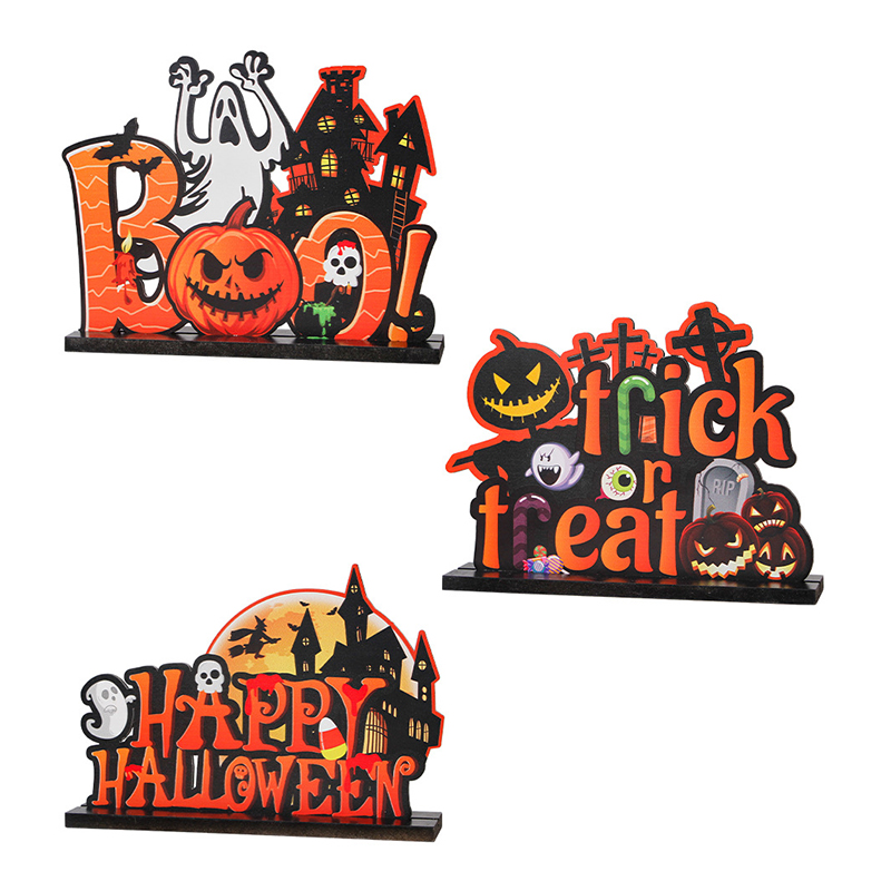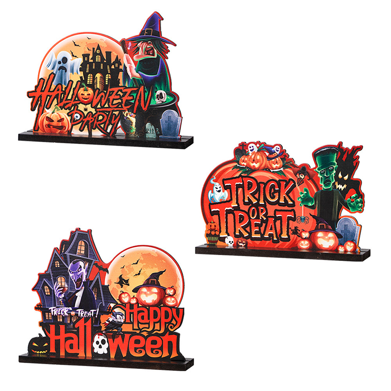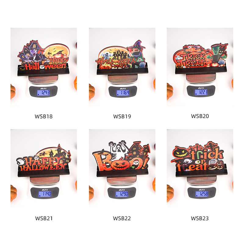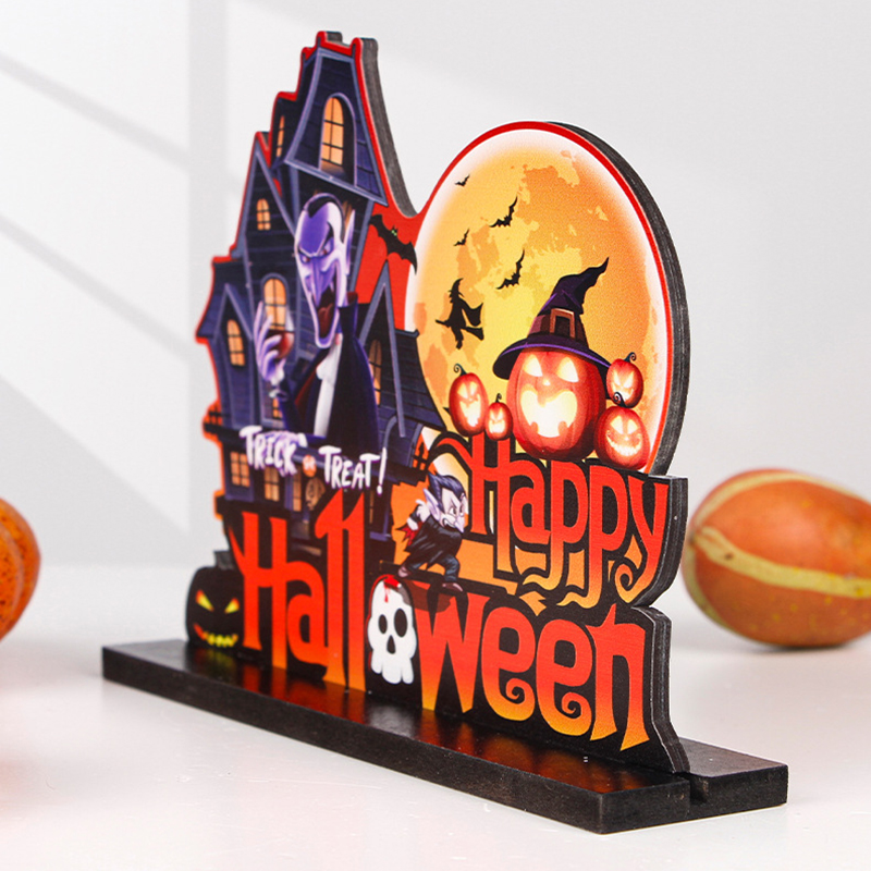 1. Настольные украшения для Хэллоуина изготовлены из высококачественной древесины, насыщенной цветом, не легко выцветают, износостойкие и долговечные.