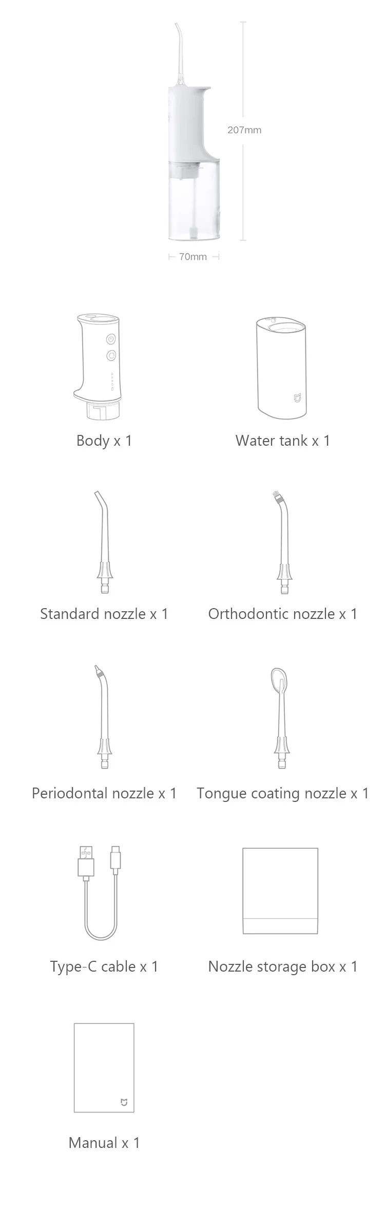 Стандартный диаметр сопла вплоть до 0,6 мм для легкого челнок между teethAccurately чистые зубы и мертвые углы полости рта. Глубокое очищение зубов может эффективно предотвратить стоматологические проблемы, такие как Дека зубов и гингивит.