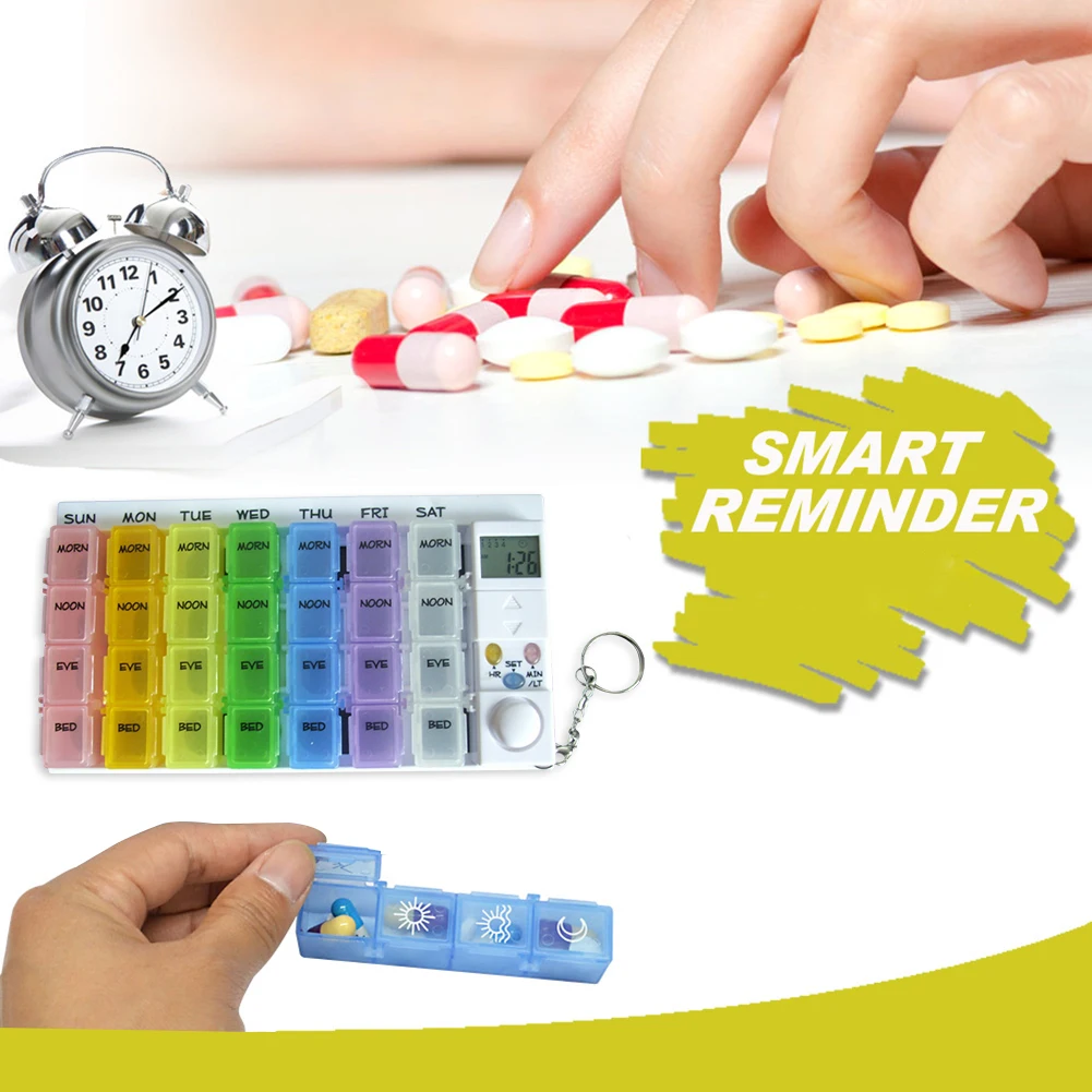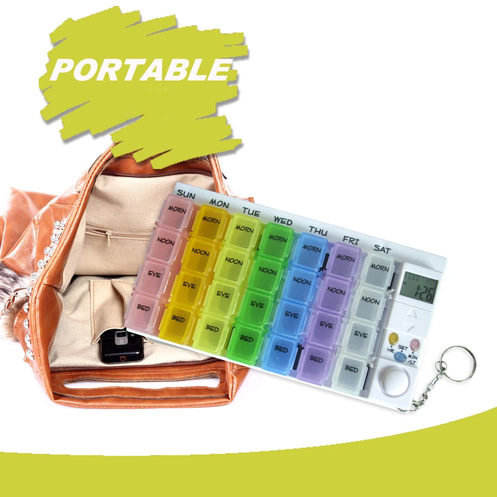 7 дней коробка для лекарств чехол-органайзер светящийся светодиодный таймер напоминание 28 сеток еженедельные планшеты Диспенсер Для Хранения будильник