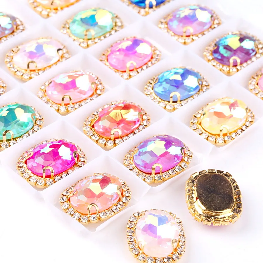 Желейные конфеты с плоским основанием АВ цвета Стекло с украшением в виде кристаллов с Стразы цепочки из золотистого металла коготь настройки овальной формы.